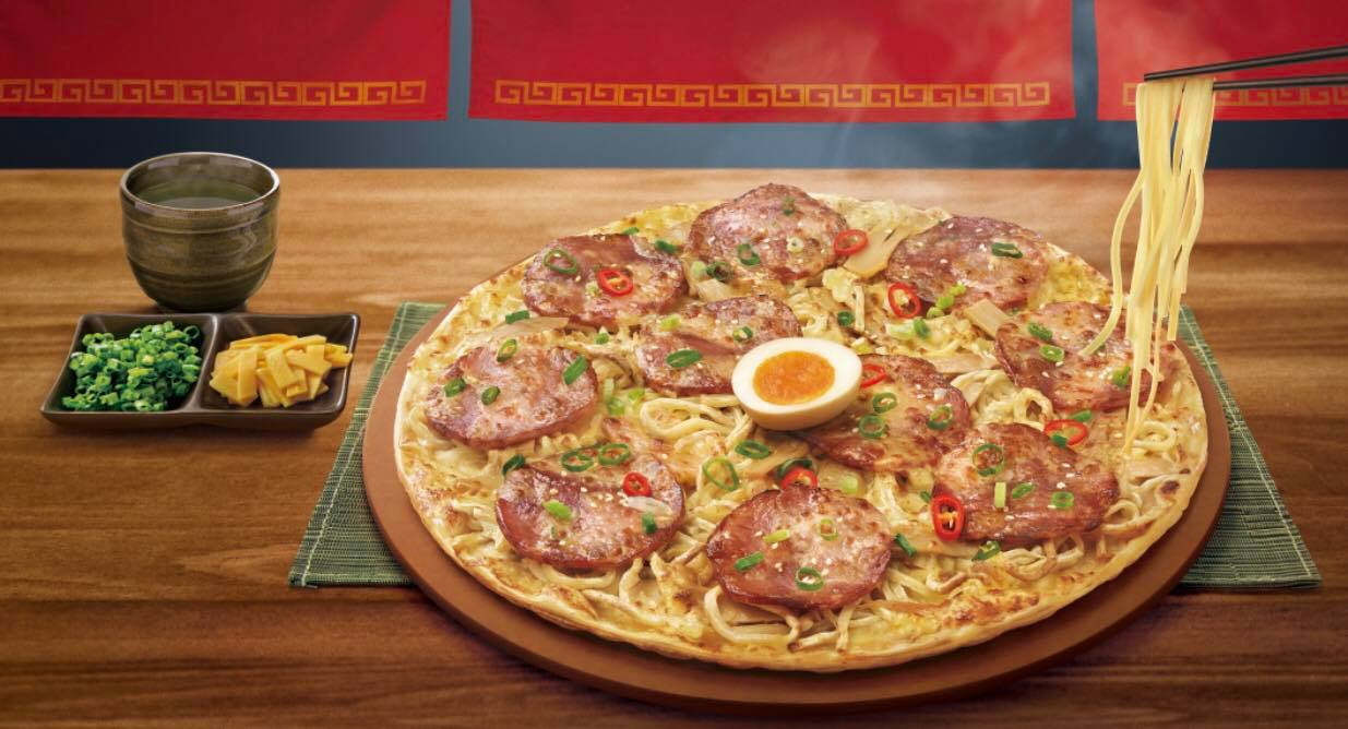 Pizza Hut Đài Loan đã cho ra mắt chiếc pizza ramen đầu tiên trên thế giới được ăn kèm với mỳ, những lát thịt nướng kiểu Nhật và một phần trứng luộc. Món ăn này được kết hợp dựa trên món tonkotsu ramen của Nhật Bản, lớp phủ phía trên gồm vừng trắng, ớt tươi, hành lá, măng và nước sốt được ninh từ xương thịt heo.