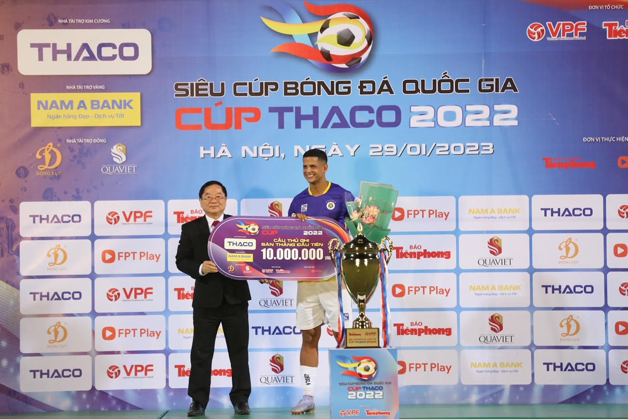 5. Cầu thủ Văn Quyết, đội trưởng CLB Hà Nội, hôn chiếc Siêu cúp 2022