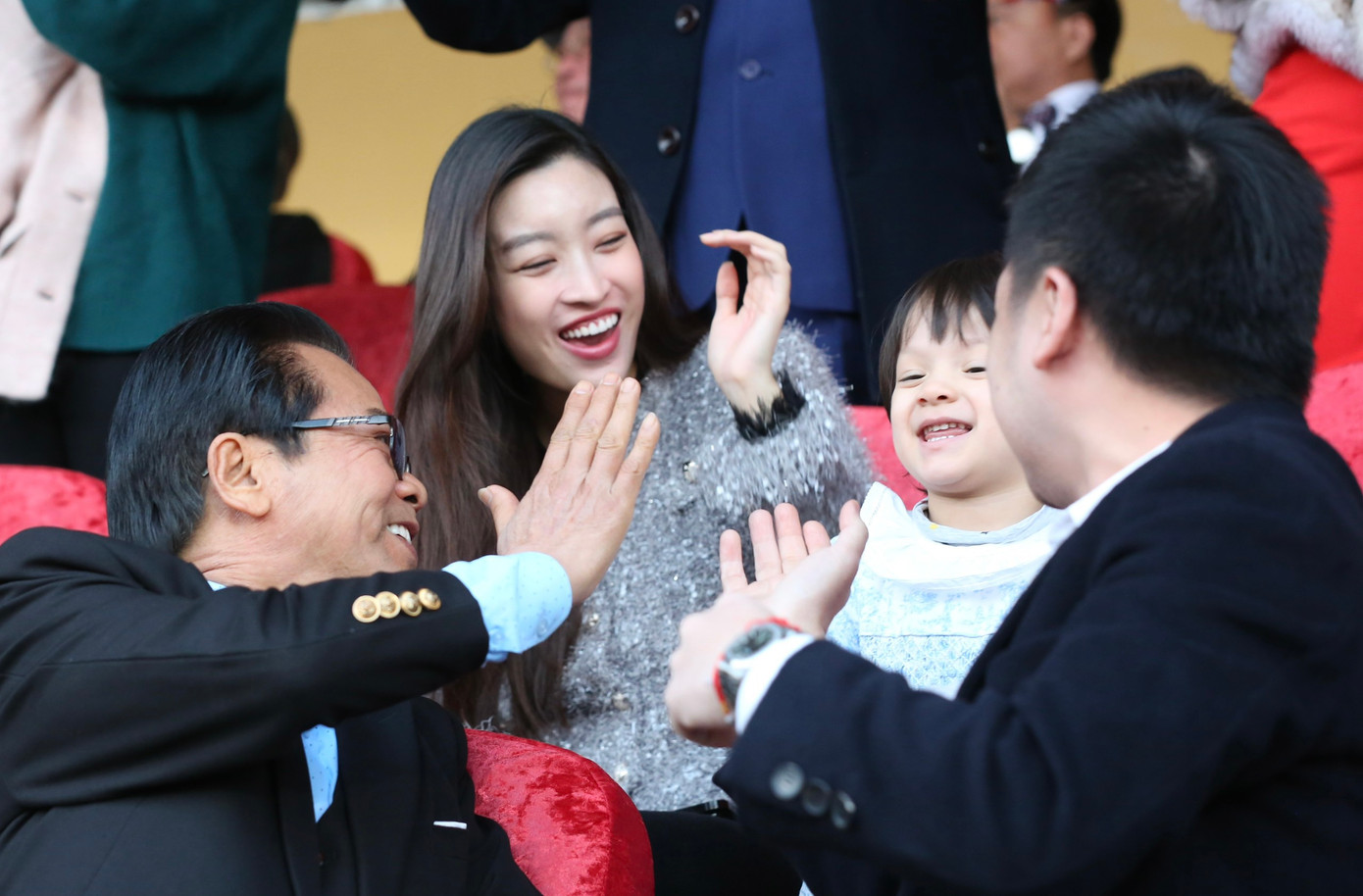 6. Gia đình Hoa hậu Đỗ Mỹ Linh chia sẻ niềm vui khi đội nhà ghi bàn thắng