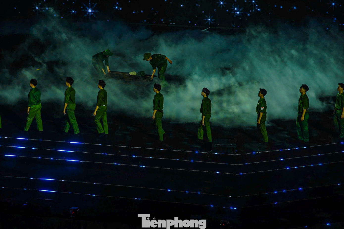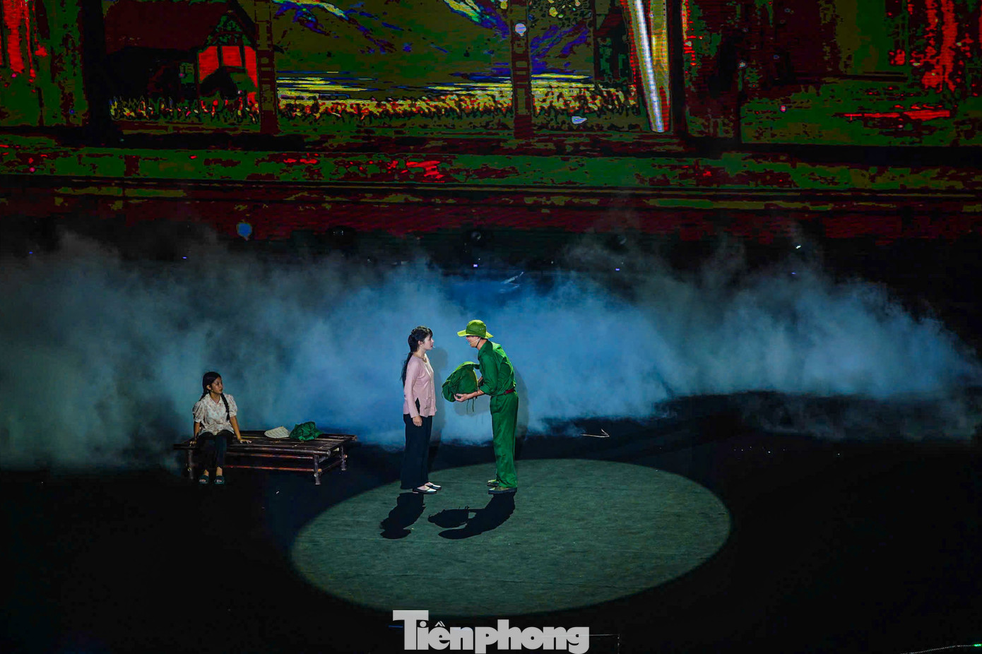 Đồng thời, chương trình tái hiện tinh thần “Xếp bút nghiên lên đường ra trận”; những bước chân “thần tốc, thần tốc hơn nữa – táo bạo, táo bạo hơn nữa – tranh thủ từng giờ, từng phút xốc tới mặt trận, giải phóng miền Nam” của Chiến dịch Hồ Chí Minh; lời hiệu triệu kết nối chung một cơ đồ.