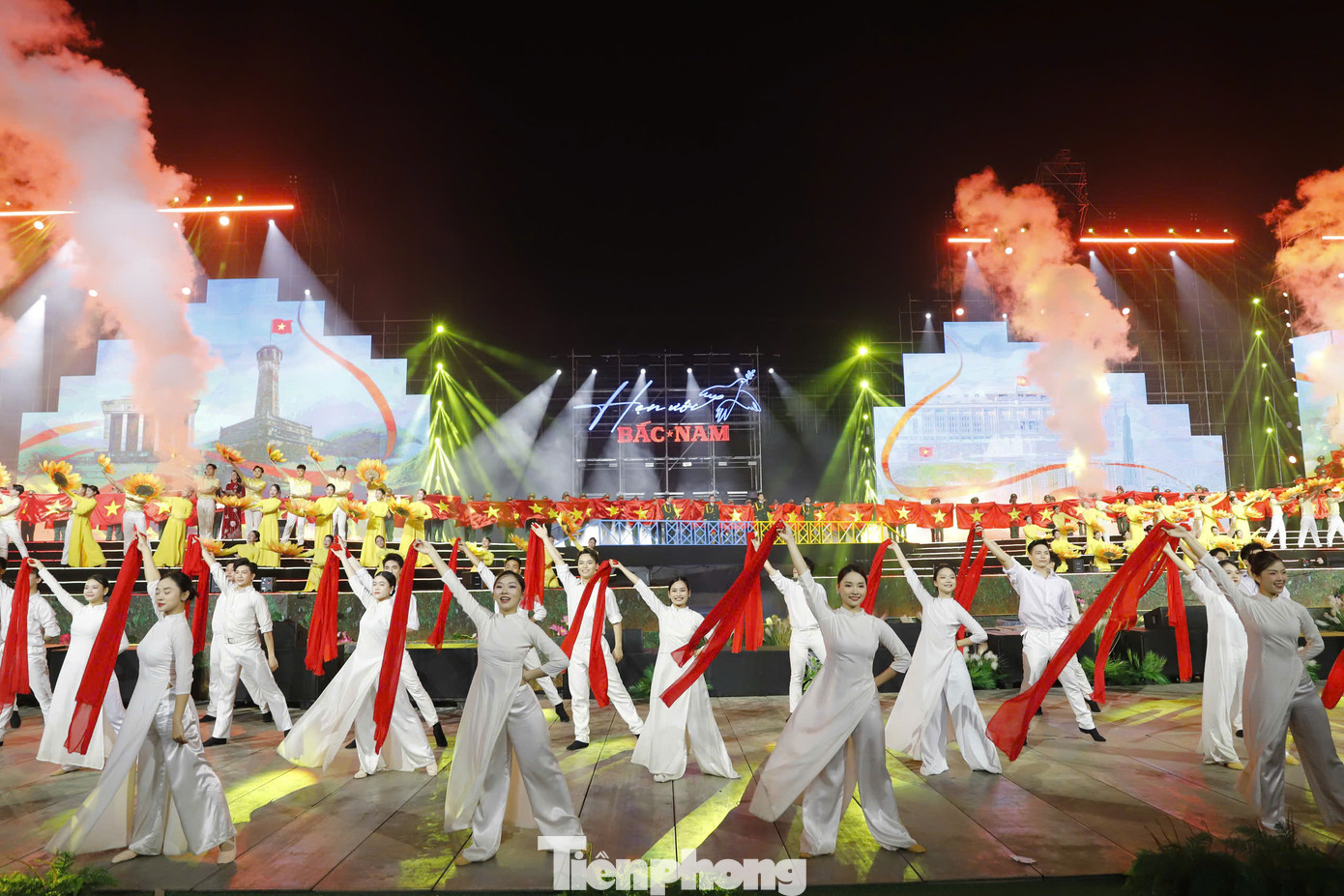 Hàng nghìn khán giả theo dõi chương trình nghệ thuật chính luận Hẹn ước Bắc - Nam được sống trong không khí hào hùng.