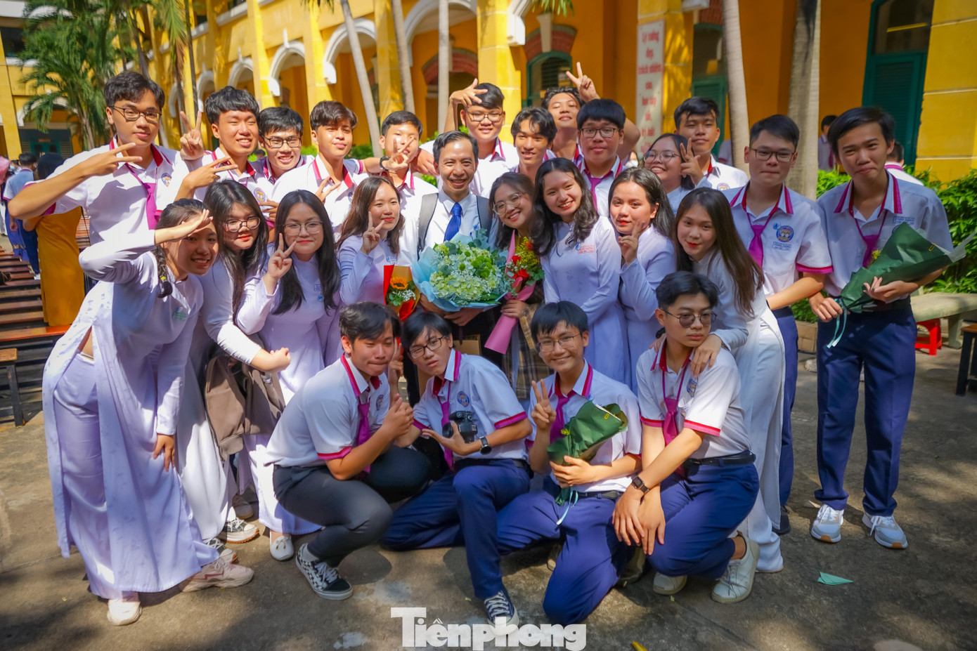 | Vì đã là phút giây cuối được học cùng nhau, nên sau khi xong lễ, có khá nhiều "cặp đôi" khối 12 đã trao cho nhau bó hoa, những cái nắm tay vô cùng đáng yêu của tuổi học trò. |