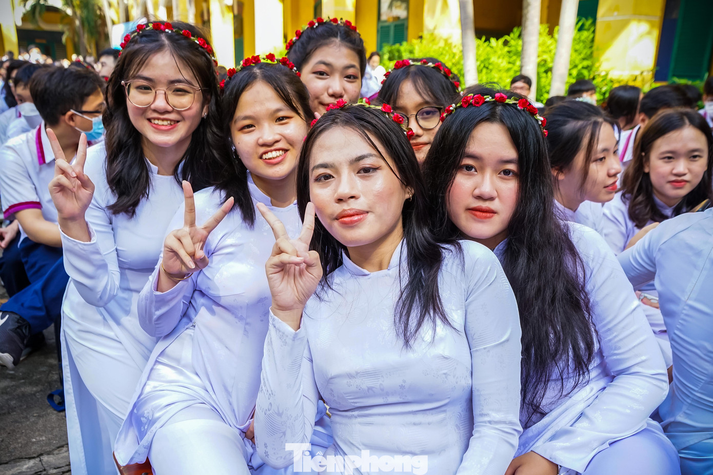 | Kết thúc chương trình lễ, dàn nữ sinh tranh thủ chụp hình để lưu lại những phút giây bên nhau trước kỳ thi THPT quốc gia. |