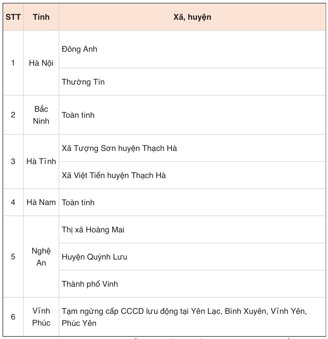 Tuy nhiên, một số khu vực, địa phương đang là "điểm nóng" của dịch COVID-19, cơ quan chức năng đã cho tạm dừng việc cấp thẻ Căn cước công dân gắn chip, cụ thể:
