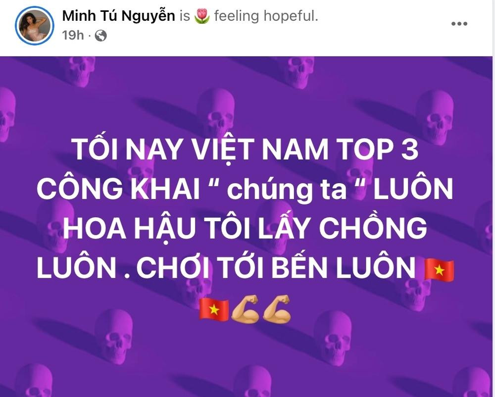 Tuy nhiên "ai mà có dè", sau khi đàn em đăng quang, Minh Tú bất ngờ "quay xe" trên livestream, cho biết bài đăng đó do thành viên trong ê-kíp của cô đăng lên trong lúc cô đang đi quay nên không biết. Nhiều người đã phải chào thua trước màn "lươn lẹo" của nữ siêu mẫu. Tuy nhiên, cuối cùng, cô nàng đã thật sự công khai "chúng ta" và công chúng đều đang mong chờ đám cưới của nữ siêu mẫu sẽ sớm diễn ra.