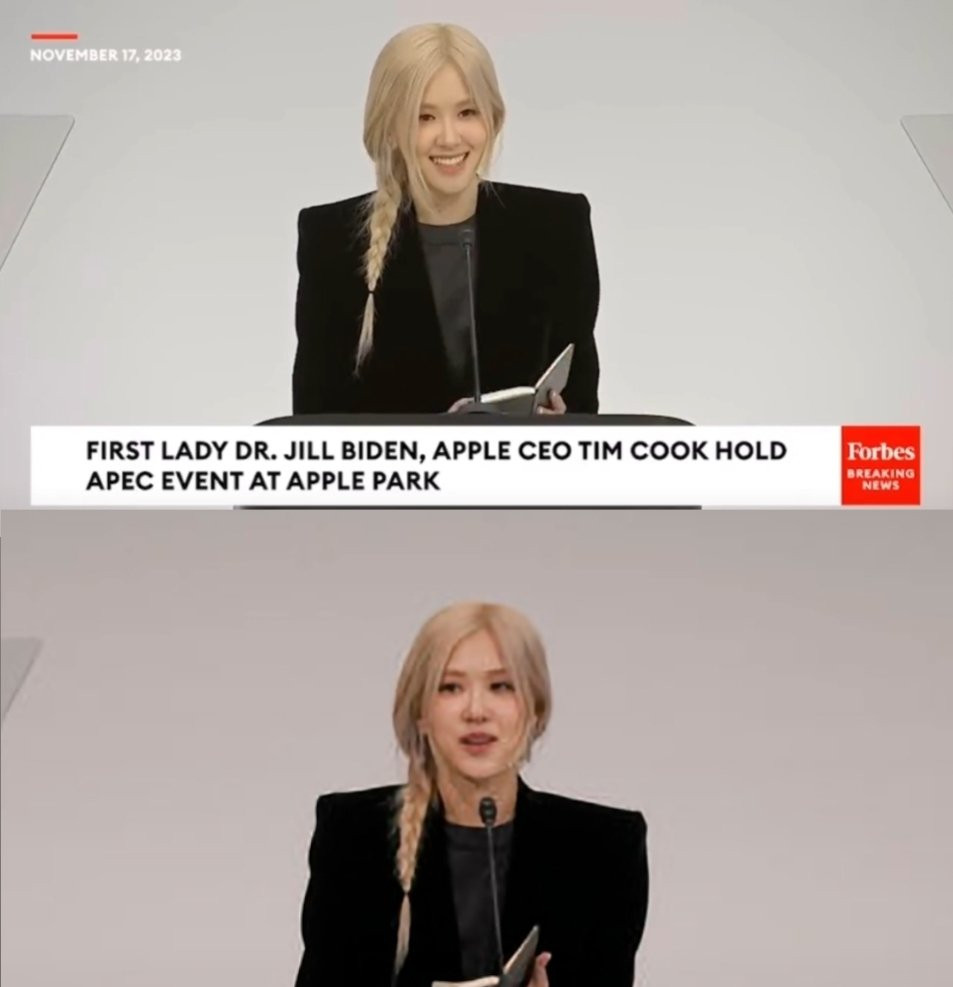 Rosé mới xuất hiện ở diễn đàn APEC tại California (Mỹ) cùng đệ nhất phu nhân Hàn Quốc - Kim Kun Hee, sau khi nhận được lời mời từ đệ nhất phu nhân Mỹ Jill Biden. Đặc biệt, sự kiện lần này có sự tham gia của nhiều nhà lãnh đạo và chuyên gia có tầm ảnh hưởng trên thế giới. Tại đây, "bông hồng" của BLACKPINK đã có dịp nêu lên quan điểm và trải nghiệm cá nhân về sức khỏe tinh thần với tư cách là người của công chúng.