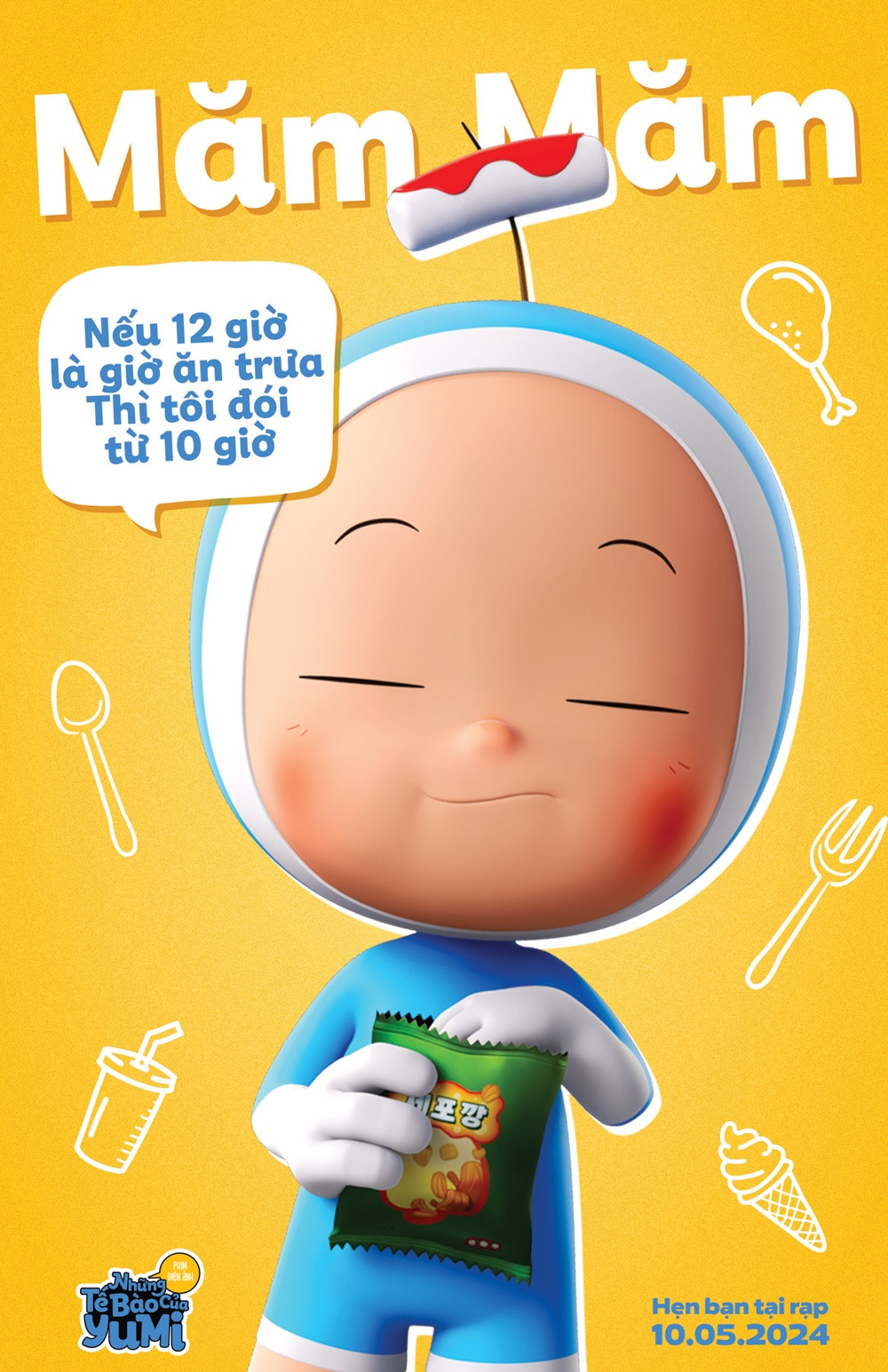 Được mệnh danh là “idol của làng”, Đói Bụng chinh phục khán giả bằng sự vô tư, chỉ quan tâm đến ăn uống của mình. Cho dù cả làng Tế bào có đang đau đầu tranh cãi thế nào, chỉ cần Đói Bụng xuất hiện (và lớn dần theo cơn đói của Yumi), cả làng nhất định sẽ phải chiều chuộng cậu chàng.