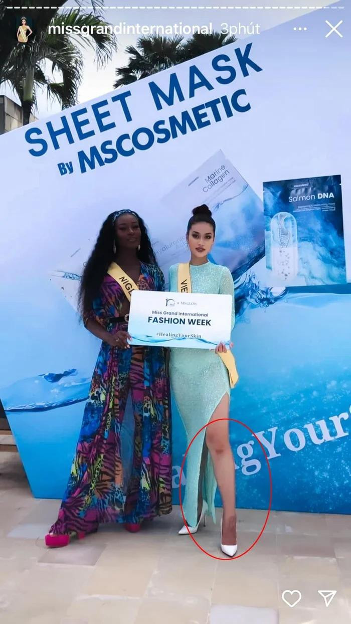 Thiên Ân chỉ có hơn hai ngày để mặc thử và chụp ảnh với hàng chục bộ đồ chuẩn bị cho Miss Grand International 2022. Tất nhiên nàng hậu không thể nhớ hết cách mặc của chúng, nhất là khi lịch trình cuộc thi rất sát sao, các thí sinh chỉ có thời gian ngắn ngủi để thay đồ, trang điểm làm tóc. Thế nên Thiên Ân đã có màn mặc sai thiết kế, xoay ngược quần từ phía sau ra phía trước khiến set đồ không được đẹp như bản gốc.