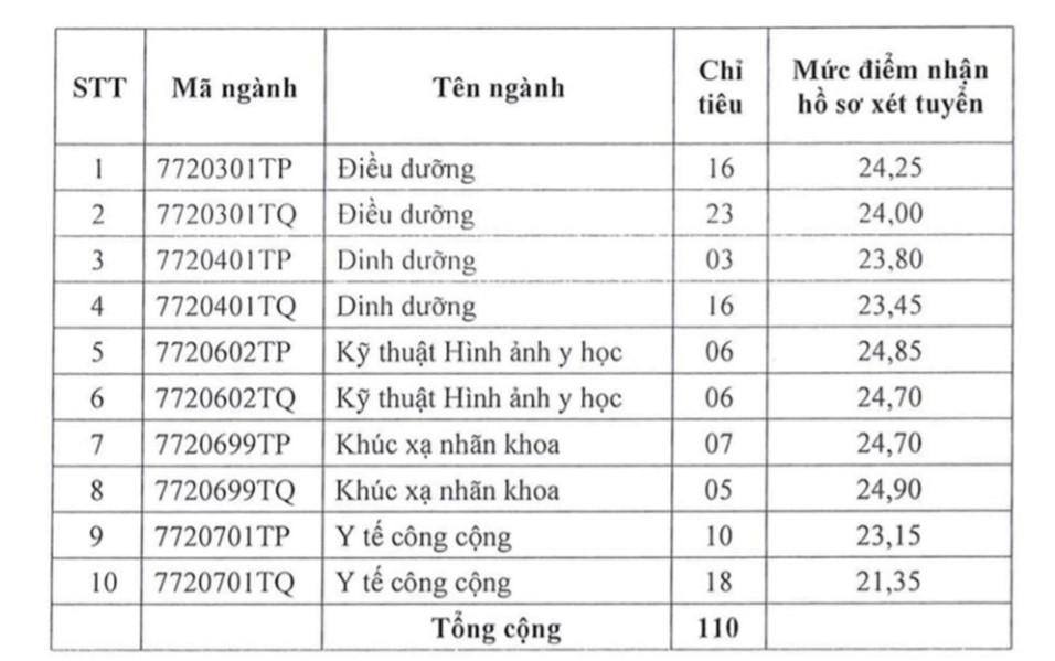 Trong khi đó, trường ĐH Y khoa Phạm Ngọc Thạch xét tuyển bổ sung 110 chỉ tiêu bằng kết quả thi tốt nghiệp đối với tổ hợp B00. Cụ thể: