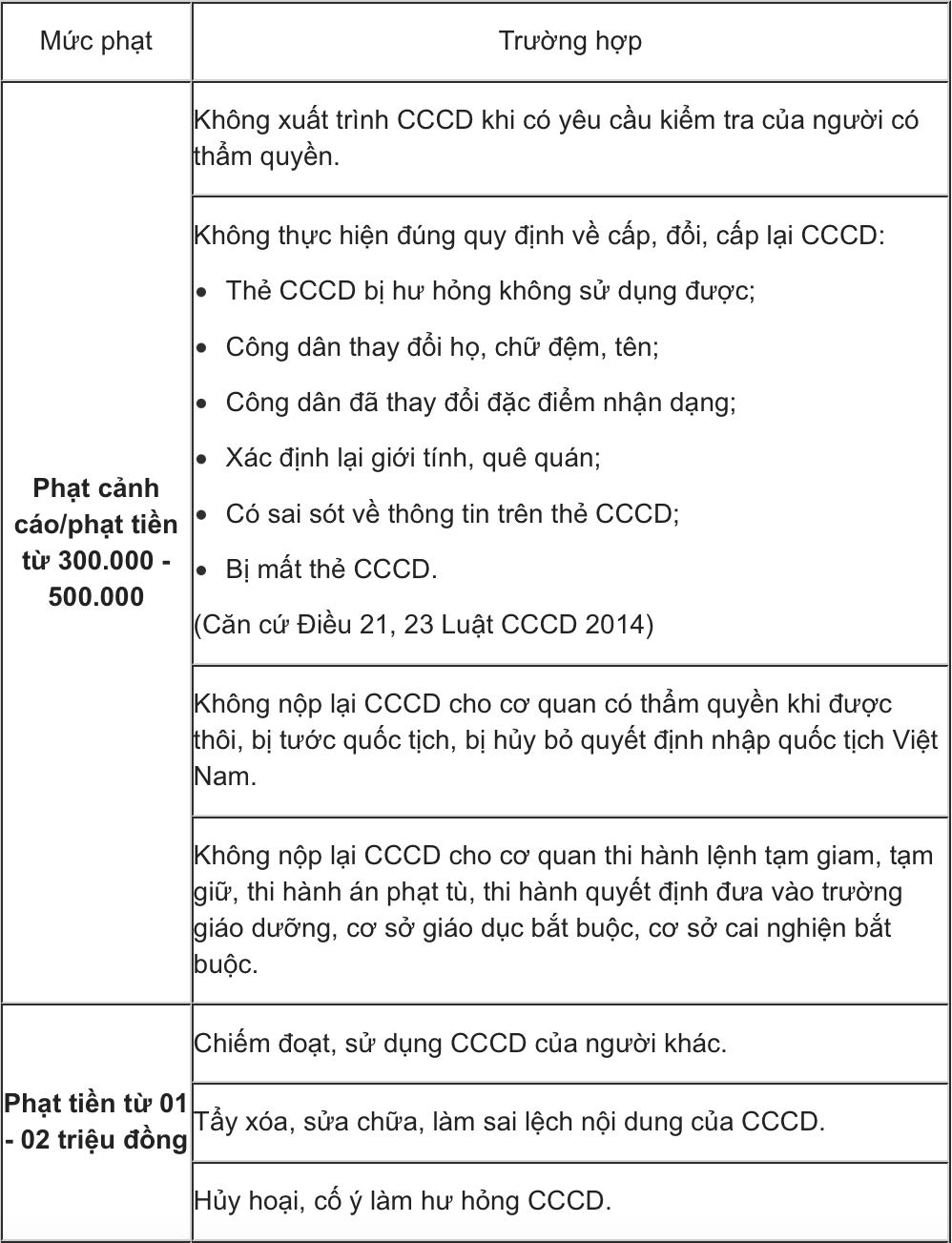 Những trường hợp dù đã có Căn cước công dân gắn chip nhưng vẫn bị phạt