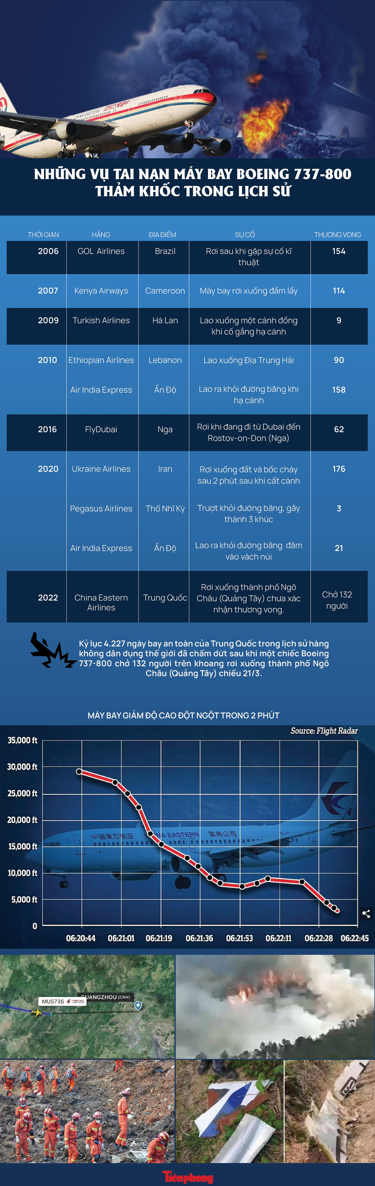 TPO - Ngay sau khi xảy ra vụ tai nạn máy bay chở khách ở thành phố Ngô Châu (tỉnh Quảng Châu) chiều 21/3, hãng hàng không China Eastern Airlines đã lập tức cho dừng bay tất cả các máy bay Boeing 737-800. Chiếc máy bay này thuộc dòng máy bay chở khách 737NG, hiện trong những dòng máy bay chở khách thân hẹp phổ biến nhất thế giới.