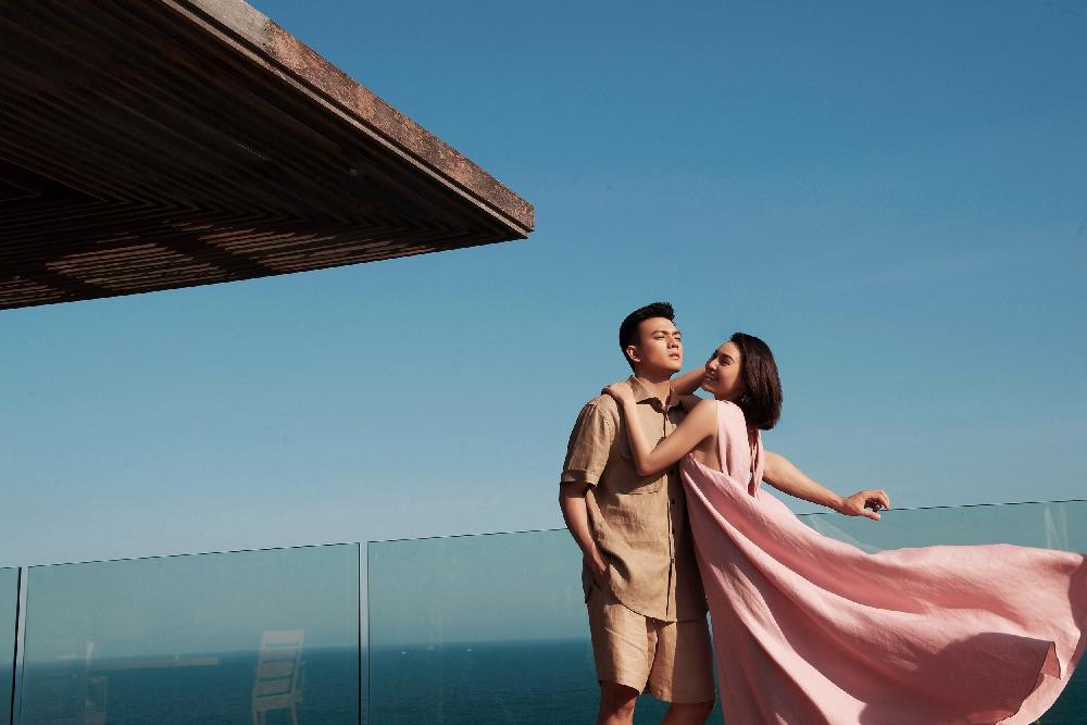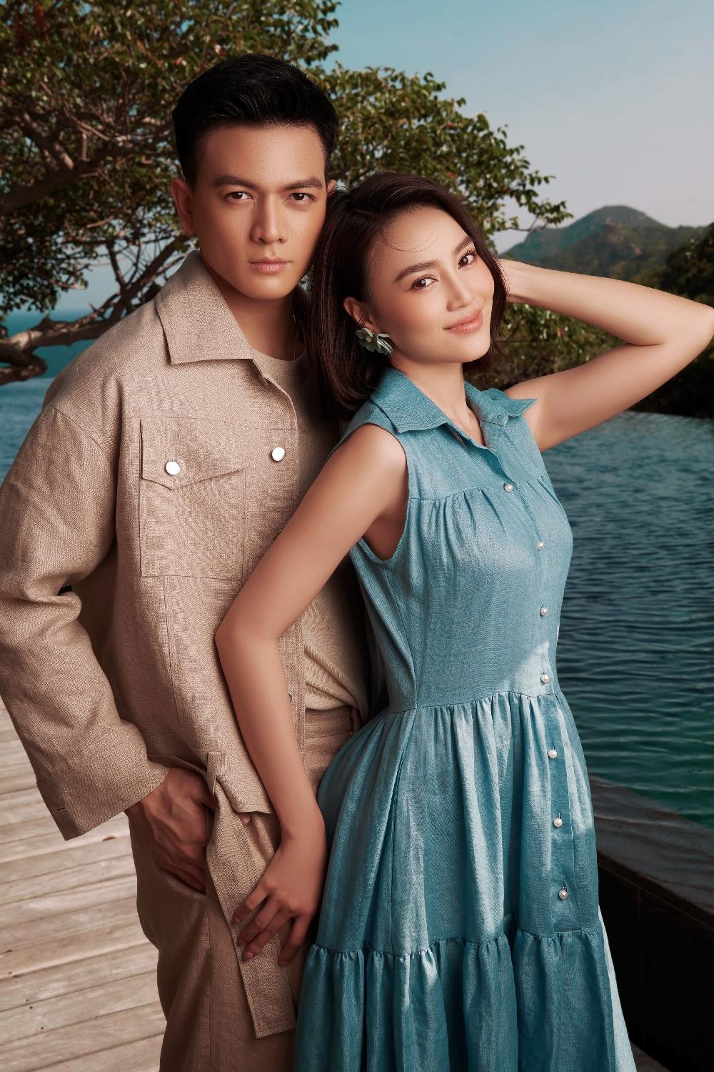 Sắc trắng mang lại vẻ ngoài thanh tao, trẻ trung cho hai diễn viên. Lan Ngọc gợi cảm với đầm hai dây nhấn bằng chi tiết nơ to bản, trong khi Lê Xuân Tiền khoe khéo cơ bắp trong áo phông đi kèm quần linen màu nâu nhạt.