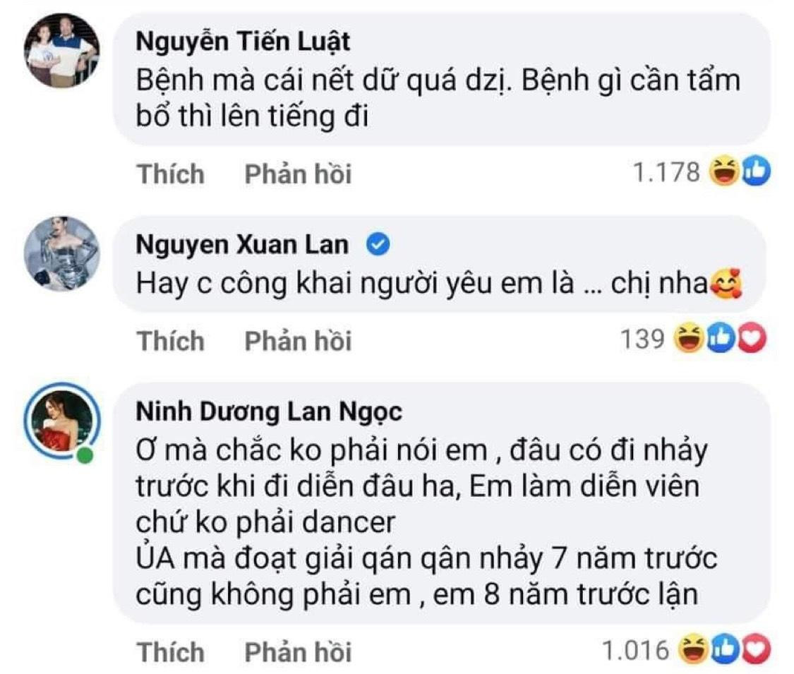 Không lâu sau đó, nghệ sĩ Tiến Luật đã vào comment hài hước: "Bệnh gì cần tẩm bổ thì lên tiếng đi" hay siêu mẫu Xuân Lan cũng để lại bình luận: "Hay chị công khai người yêu em là... chị nha" khiến dân tình không khỏi thích thú.