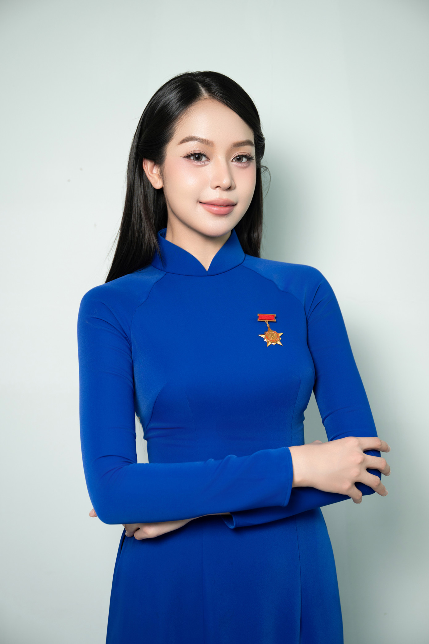 Trong số các đại biểu, Hoa hậu Việt Nam 2022 Huỳnh Thị Thanh Thủy vinh dự được góp mặt. Xuất hiện giản dị trong tà áo dài truyền thống cùng Huy hiệu 'Thanh niên tiên tiến làm theo lời Bác', Hoa hậu Thanh Thủy để lại nhiều ấn tượng bởi sự nền nã, thanh lịch.