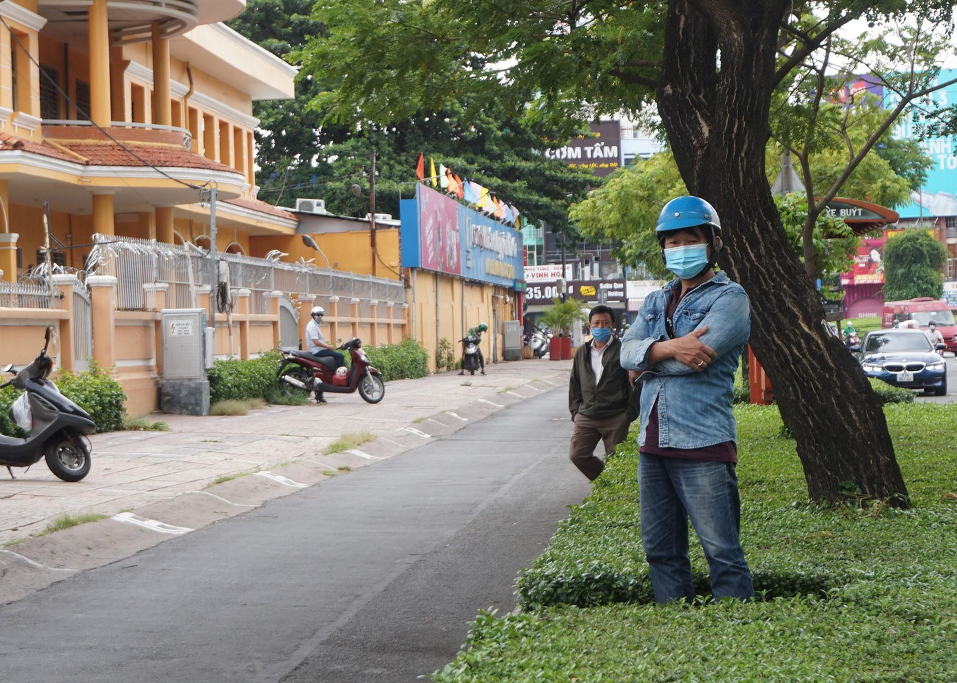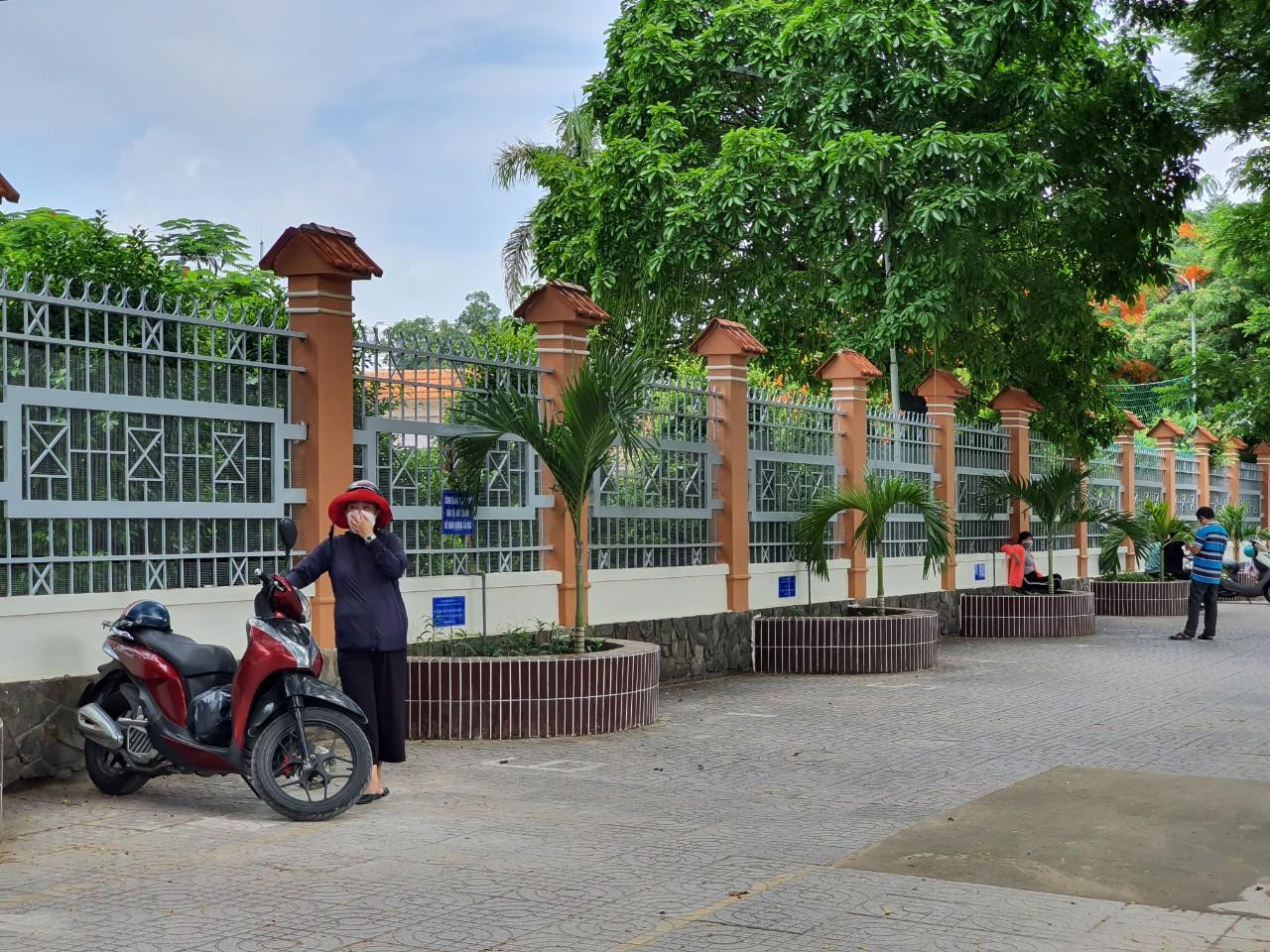 | Khu vực trước cổng trường thi tại TPHCM đều vắng bóng phụ huynh nhằm đảm bảo quy định giãn cách giữa thời điểm dịch bệnh phức tạp |