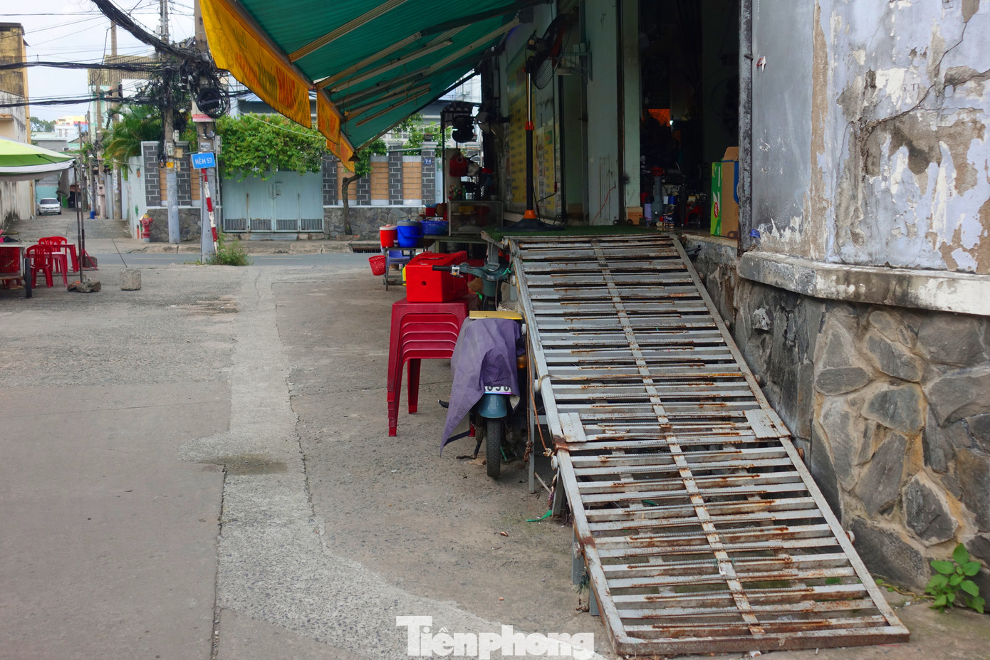 | Một loạt ngôi nhà trên đường Dương Văn Cam (phường Linh Tây, TP Thủ Đức) phải nâng nền để tránh nước tràn vào nhà mỗi khi mưa lớn. |