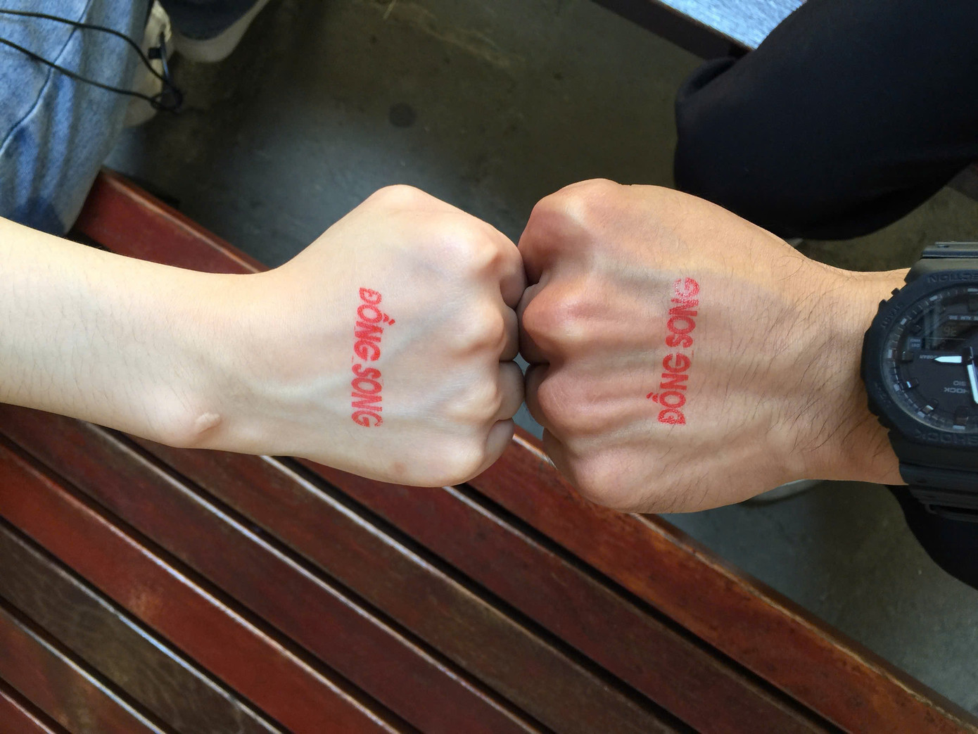 | Nhiều người trẻ thích thú trước cách truyền thông đầy sáng tạo và sâu sắc qua “đóng dấu đồng song” và thông điệp “lá bàng” của Di tích Nhà tù Hỏa Lò. |