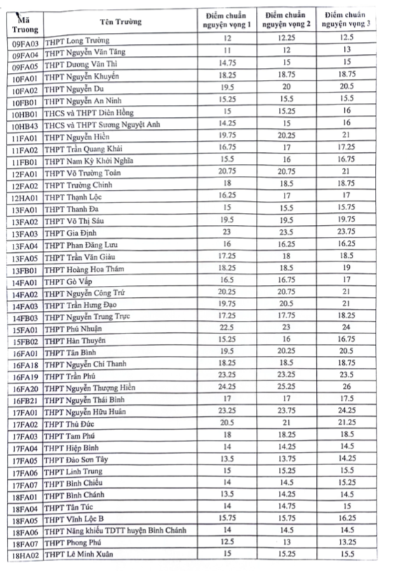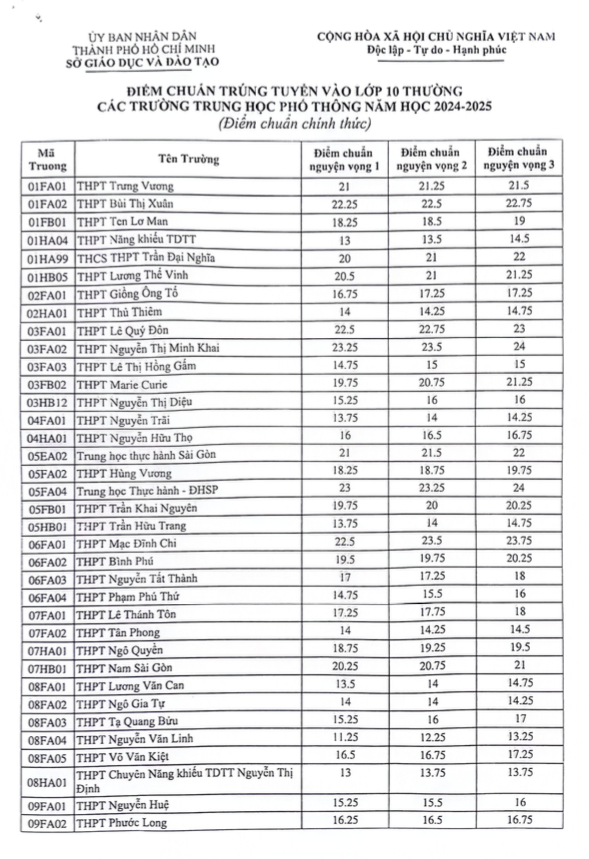 Điểm chuẩn vào lớp 10 công lập năm học 2024-2025 vào các trường THPT tại TPHCM cụ thể như sau: