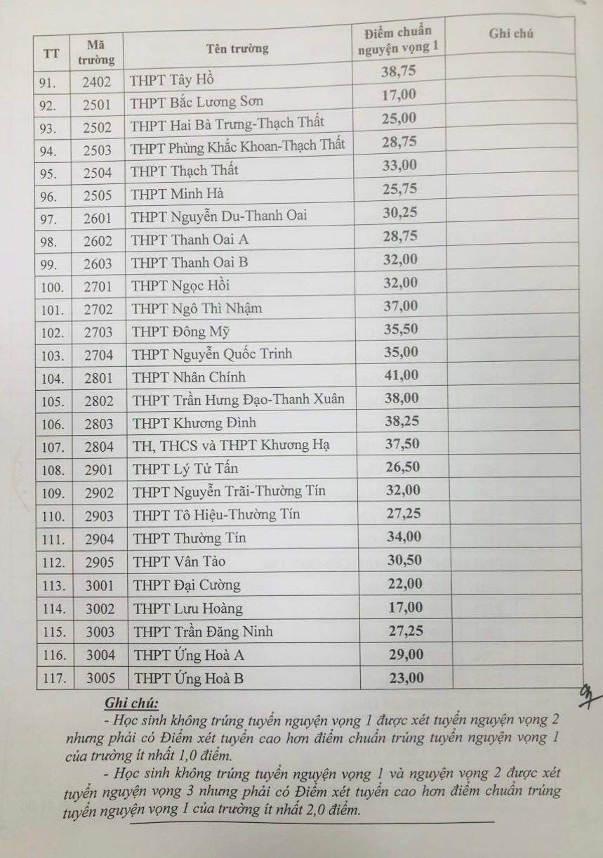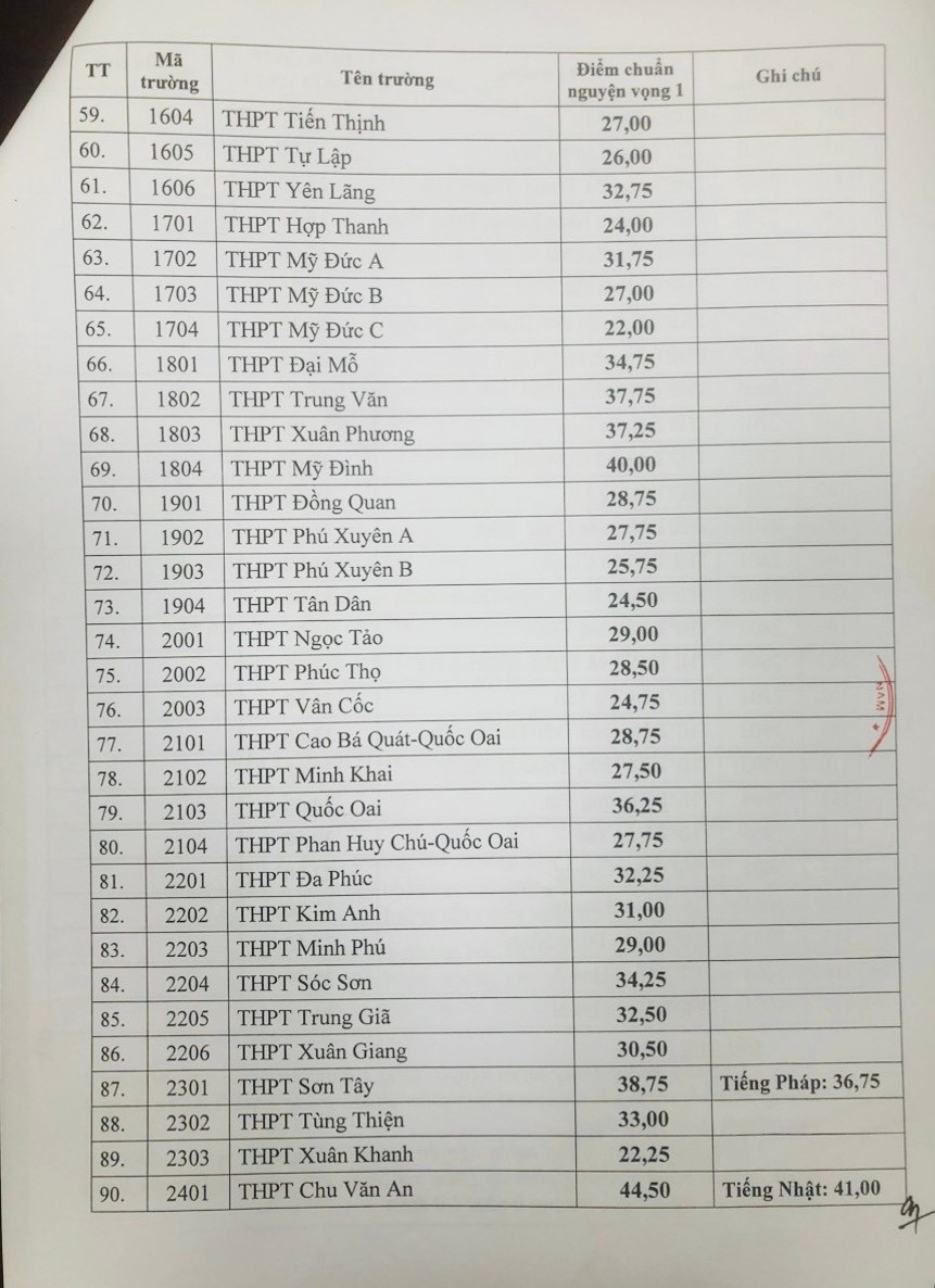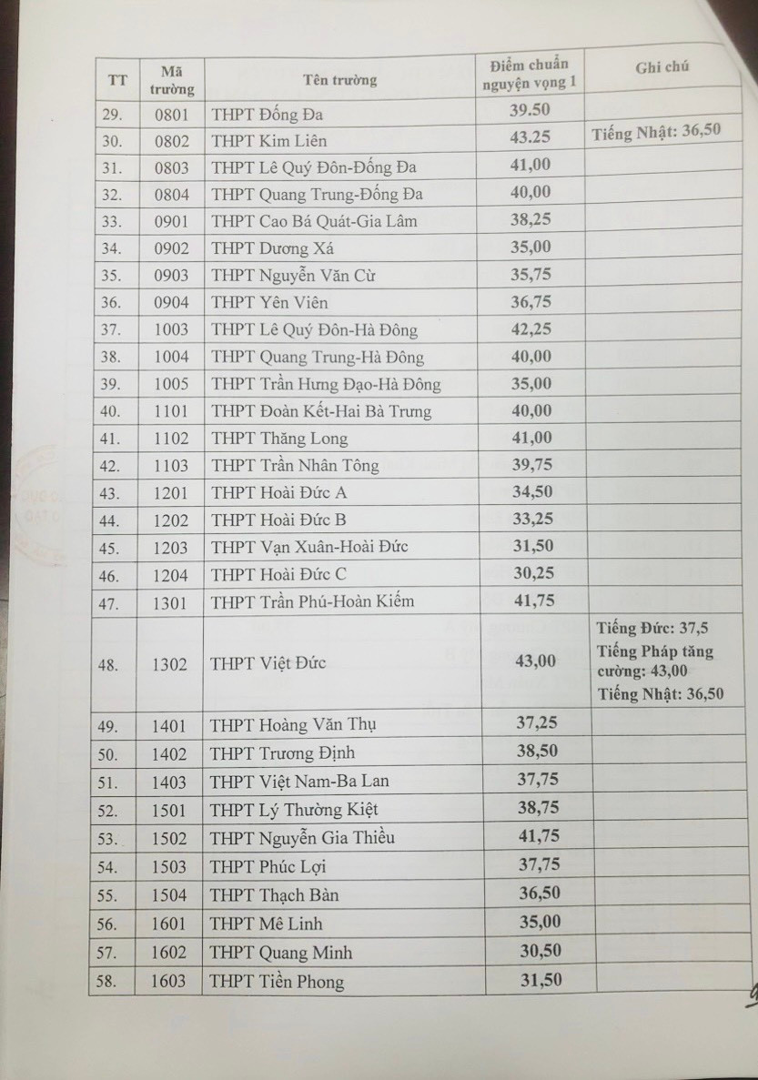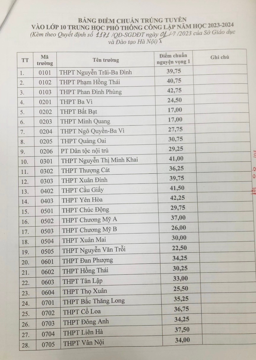 Danh sách điểm chuẩn cụ thể của các trường THPT công lập năm 2023-2024 như sau: