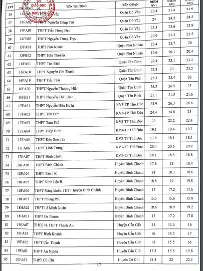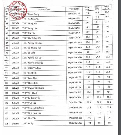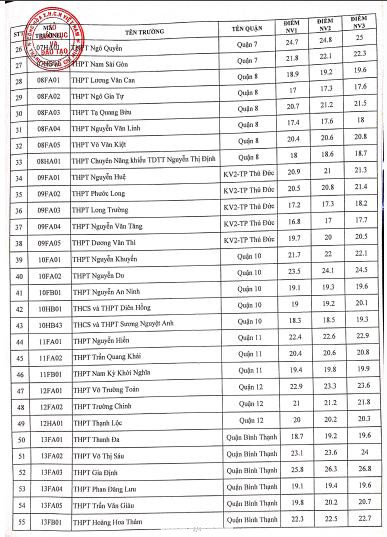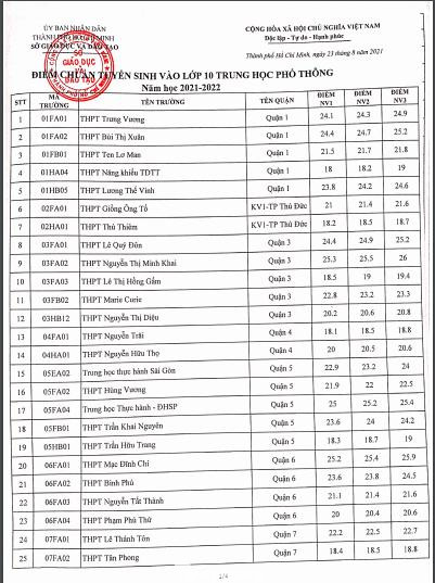 Danh sách điểm chuẩn trúng tuyển vào lớp 10 các trường THPT như sau: