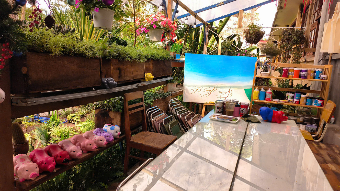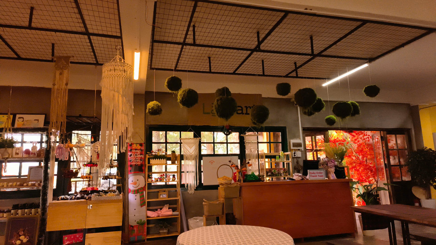 | Một số sản phẩm handmade được trang trí tại quán. |