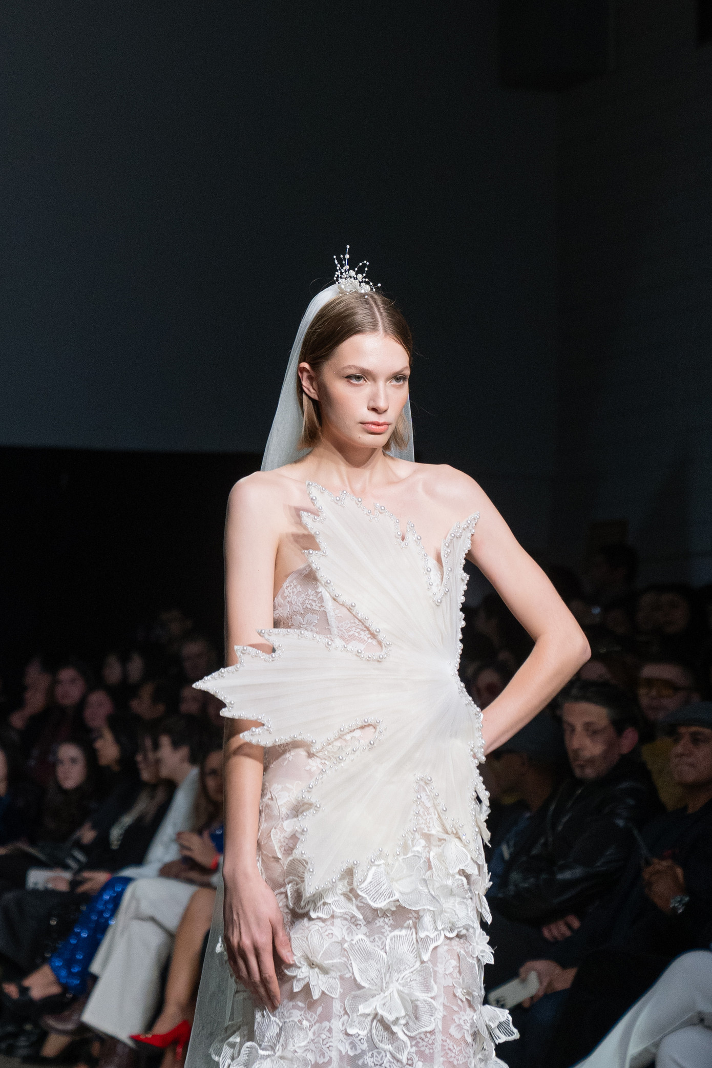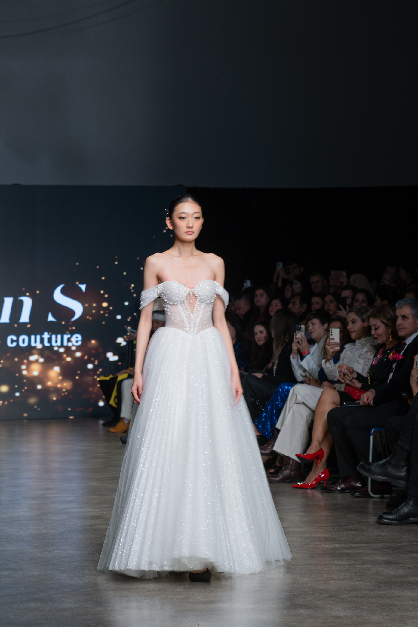 BST Radiant symphony - Bản giao hưởng rạng ngời gồm 12 thiết kế tôn vinh sự kết hợp hoàn hảo giữa phong cách cổ điển và hiện đại, như một bản giao hưởng hoàn chỉnh của tình yêu. BST sử dụng những chất liệu quen thuộc trong thiết kế áo cưới như voan, lụa, lãnh... kỹ thuật thêu, đính kết, tạo phom 3D cùng những đường cut-out gợi cảm tinh tế.