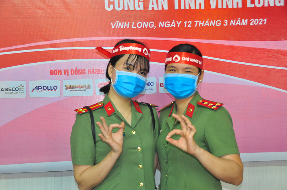 Những 'bóng hồng' công an tỉnh Vĩnh Long tham gia hiến máu tại Chủ nhật Đỏ. - Ảnh: Hòa Hội