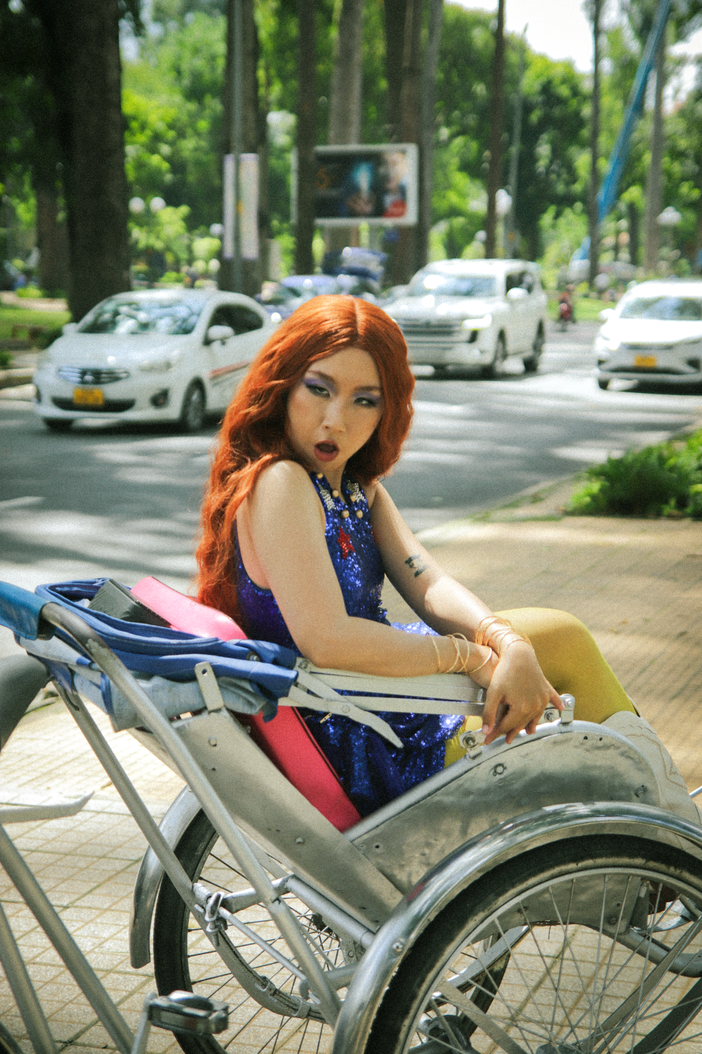Khán giả sẽ dễ dàng bắt gặp những hình ảnh quen thuộc như chợ Bến Thành, Bưu điện trung tâm Sài Gòn, đường sách Nguyễn Văn Bình và Hồ Con Rùa thông qua những thước phim của MV. Từ những khoảnh khắc dạo quanh chợ, trò chuyện với các cô bán vải, thưởng thức món chè cùng bạn bè, đến những chuyến xích lô len lỏi qua các con phố nhộn nhịp, tất cả đã tạo nên một bức tranh sống động, kết hợp hài hòa giữa Sài Gòn hiện đại và truyền thống. Không chỉ vậy, cô còn vui vẻ giao lưu với người dân địa phương, hướng dẫn họ thực hiện vũ đạo 'hot' này.