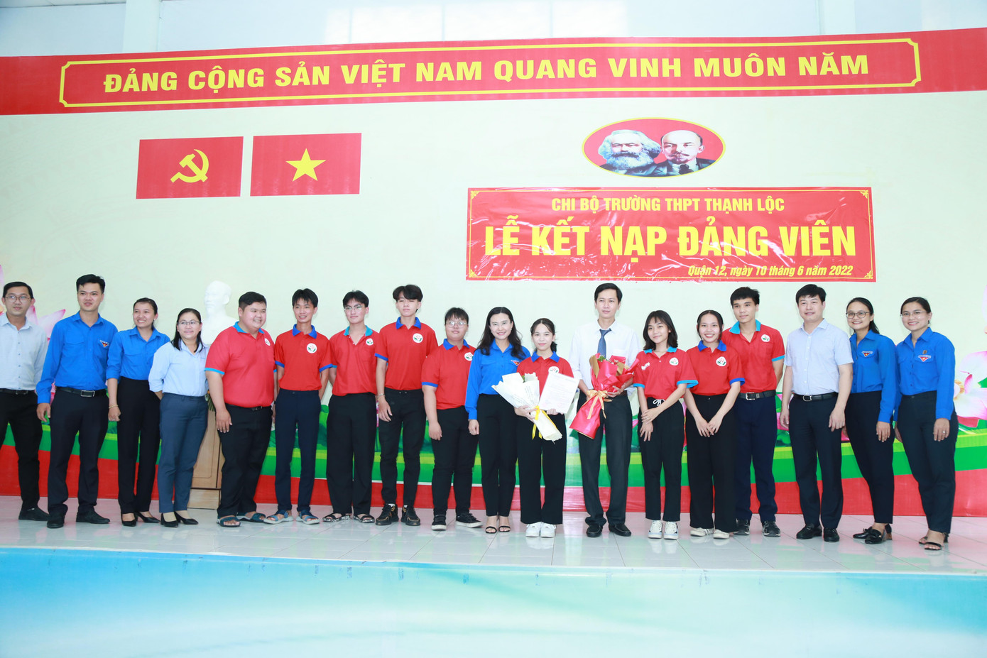 Chiều 10/6, Chi bộ Trường THPT Thạnh Lộc (quận 12, TPHCM) tổ chức lễ kết nạp Đảng viên đối với hai quần chúng Đào Công Toàn và Nguyễn Thùy Trang.