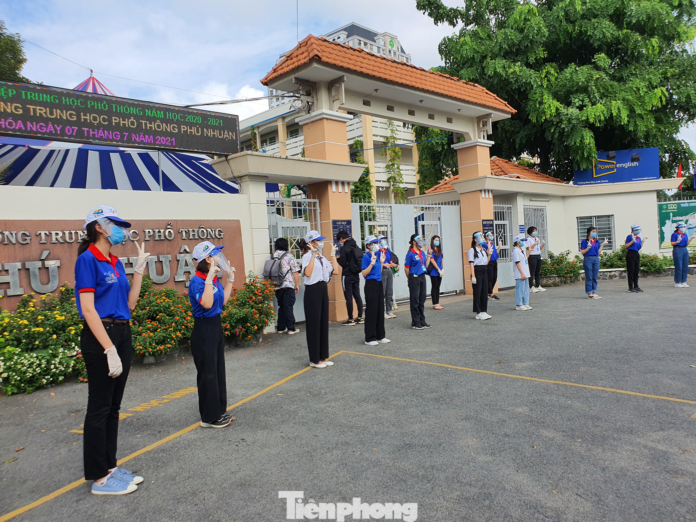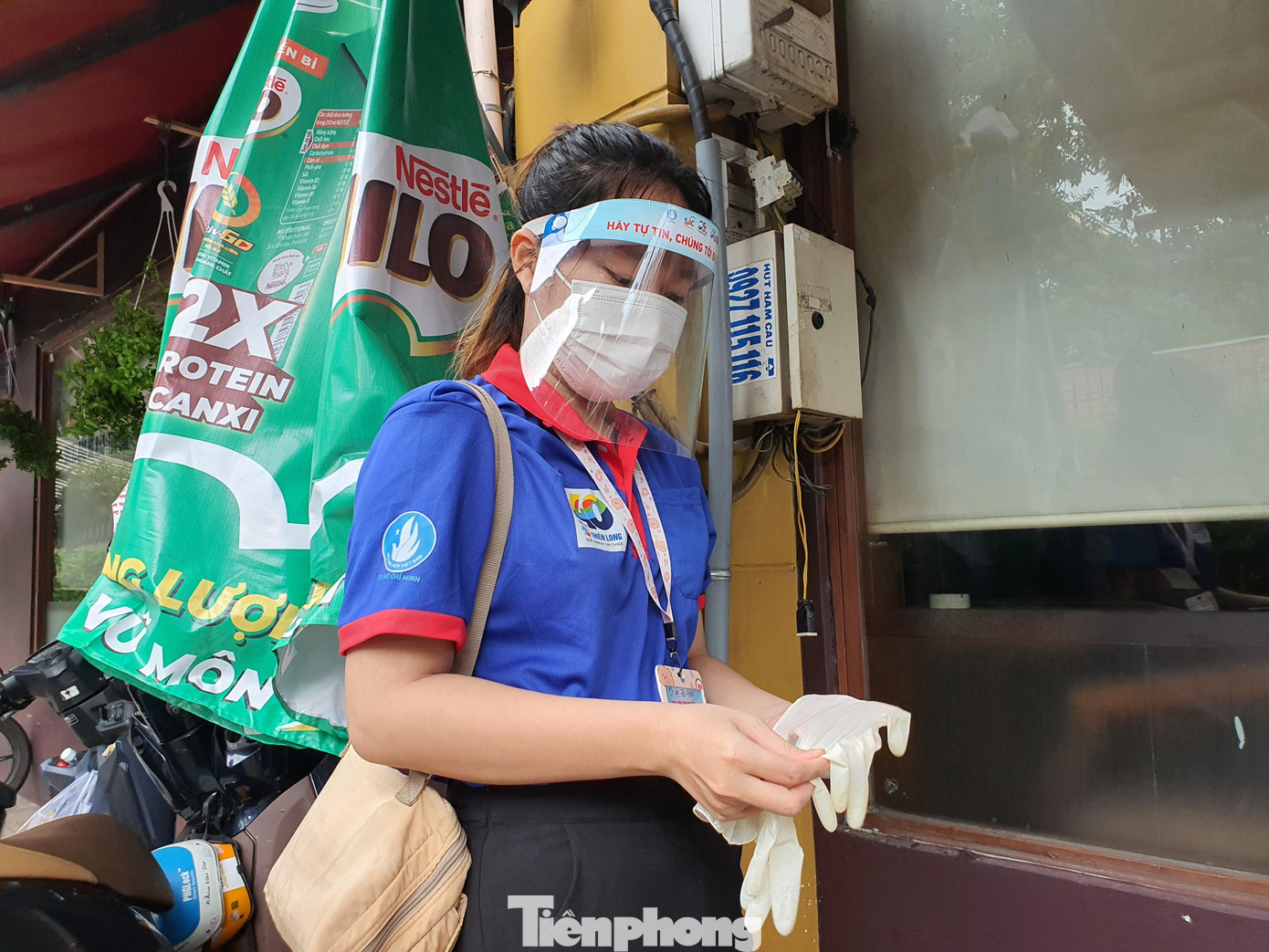 Tình nguyện viên mang mũ chống giọt bắn, găng tay tiếp sức thí sinh thi tốt nghiệp THPT