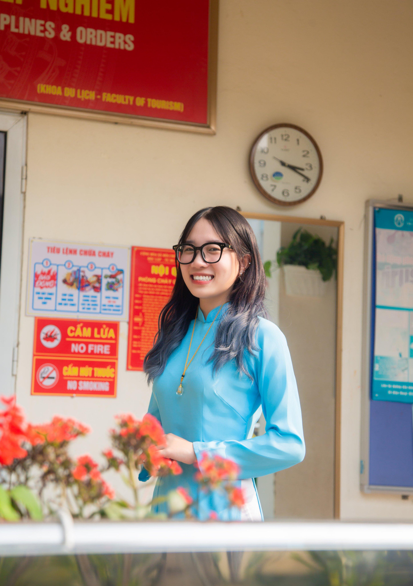 Cô chia sẻ: “Mình thấy lựa chọn vào ngành học này là một quyết định đúng đắn của mình, chưa bao giờ mình hối hận khi lựa chọn vào đây. Mình đã tìm hiểu về trường rất kỹ từ lớp 12 và cảm thấy trường Đại học Mở là một trong những trường Top đầu về đào tạo ngành Du lịch. Điểm của trường cũng không quá thấp, không quá cao phù hợp với năng lực của bản thân mình. Thầy cô trong trường, trong khoa rất nhiệt tình, các môn học hầu như là môn chuyên ngành vô cùng bổ ích, giúp mình củng cố kiến thức để đi làm bên ngoài. Trường cũng cho sinh viên thực tập tại nhiều nơi nhưng do tình hình dịch hiện tại đang phức tạp nên trường đang cho hoãn, mình cũng chưa đi thực tập được.”