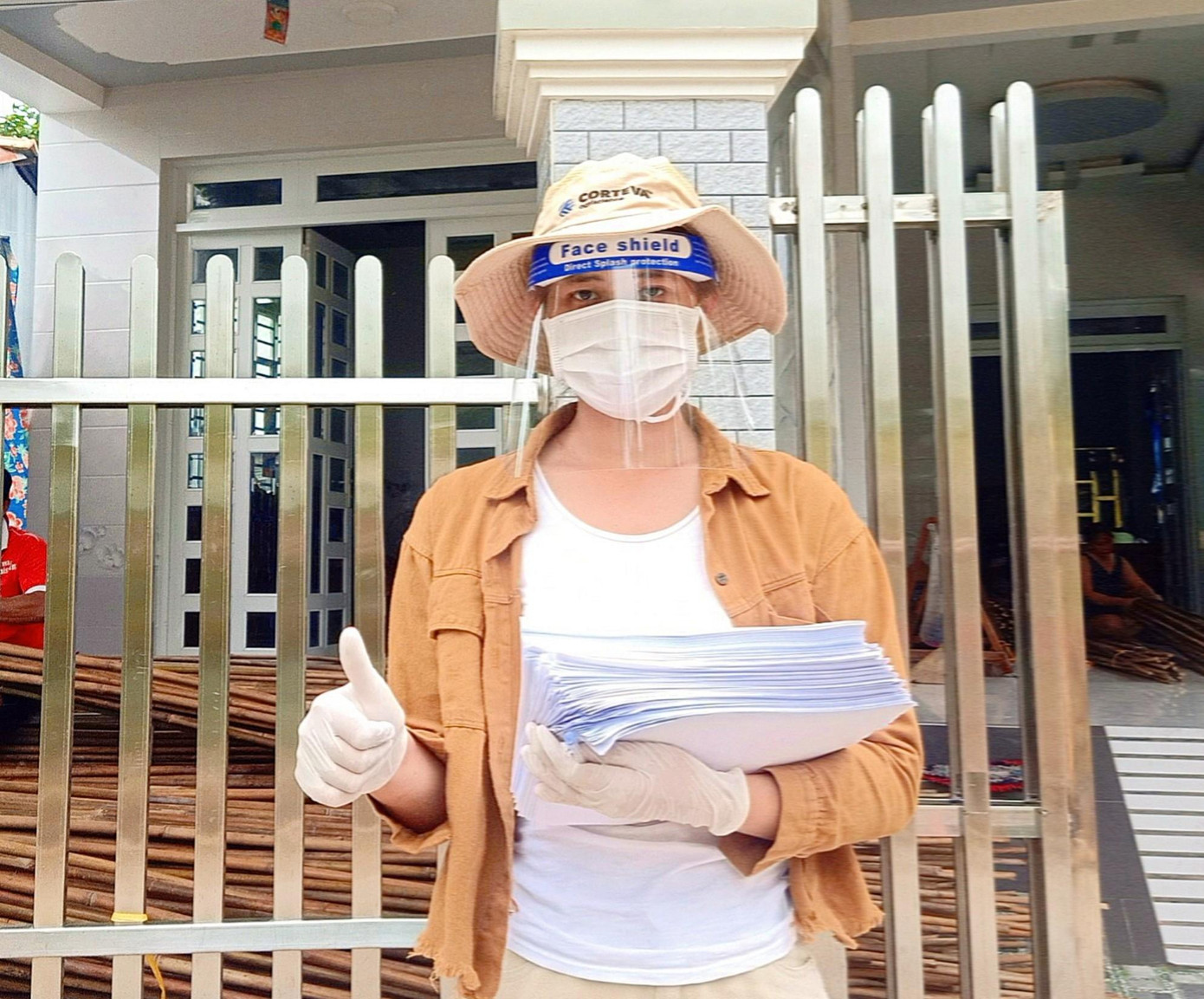 | Ngô Thị Tường Vi "gõ cửa từng nhà" người dân tuyên truyền phòng chống dịch COVID-19. Ảnh: NVCC |
