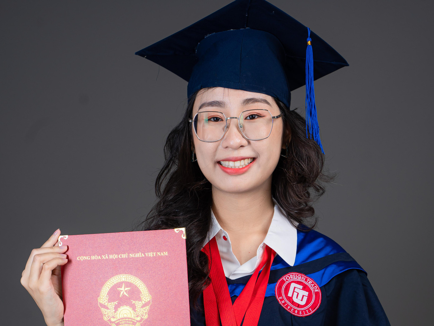 Tân thủ khoa đầu ra Đỗ Hoàng Phương Nhi học chương trình Tiên tiến Kinh tế đối ngoại, Viện Kinh tế & Kinh doanh quốc tế, trường Đại học Ngoại thương.
