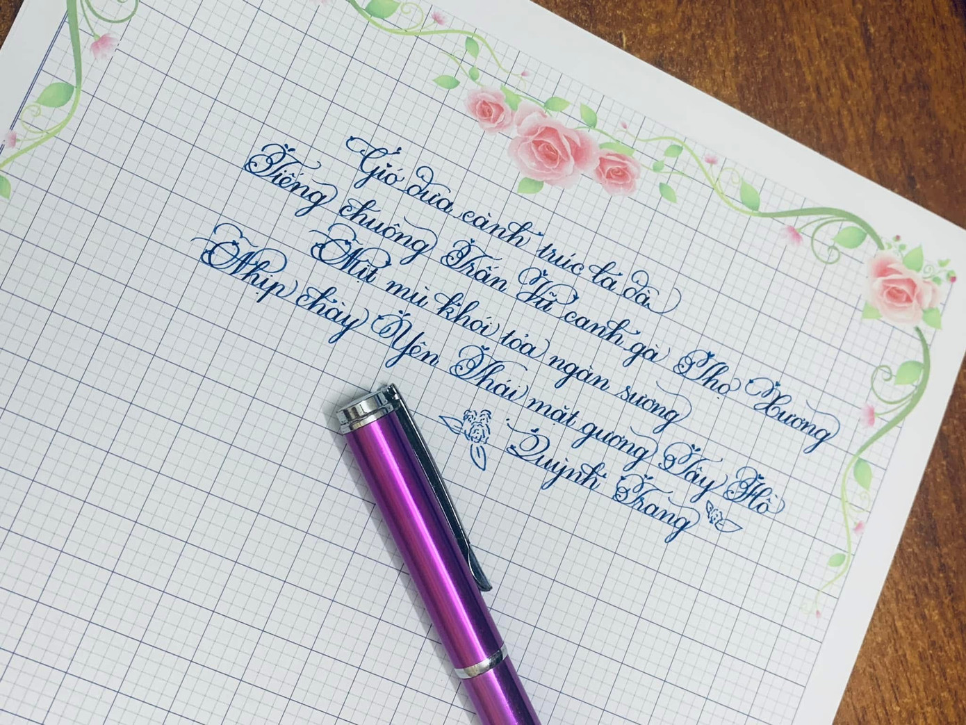 | Từ cô học trò bị cô giáo nhận xét là "viết còn bẩn, nhanh, cần rèn luyện nhiều", Quỳnh Trang đã không ngừng nỗ lực rèn luyện, trở thành cô sinh viên đam mê luyện chữ. |