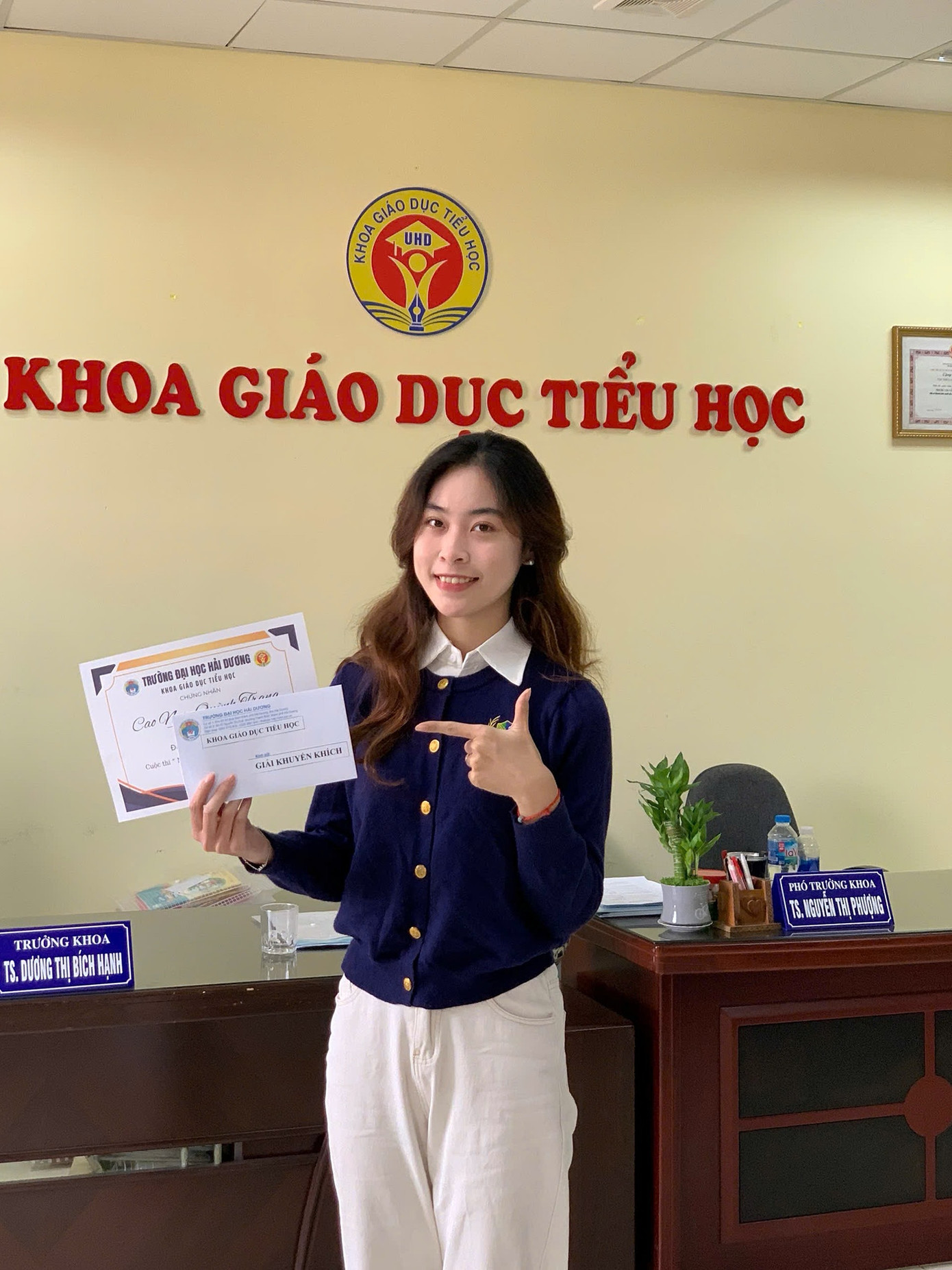 | Cao Ngọc Quỳnh Trang (sinh năm 2005) hiện đang là sinh viên Khoa Giáo dục Tiểu học của trường Đại học Hải Dương. |
