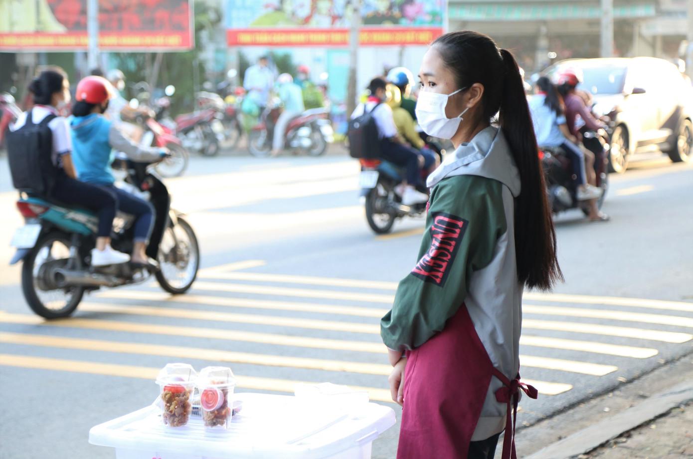 | Cô học trò chăm chỉ tận dụng khoản thời gian sáng sớm để buôn bán và tranh thủ đi học ngay sau đó. |