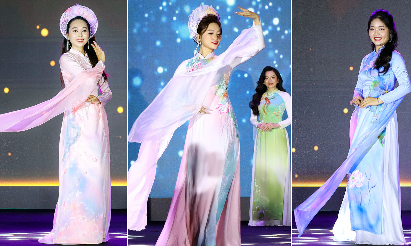 | Trong đêm chung kết, các thí sinh trải qua các phần thi trình diễn trang phục áo dài, trang phục dạ hội và trình diễn tài năng. |