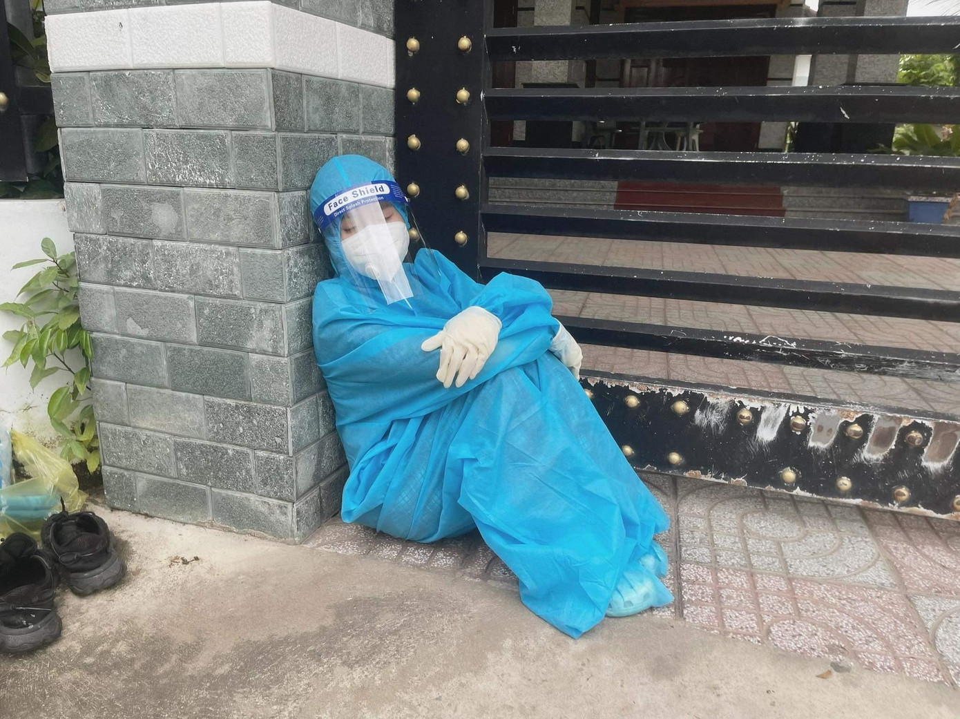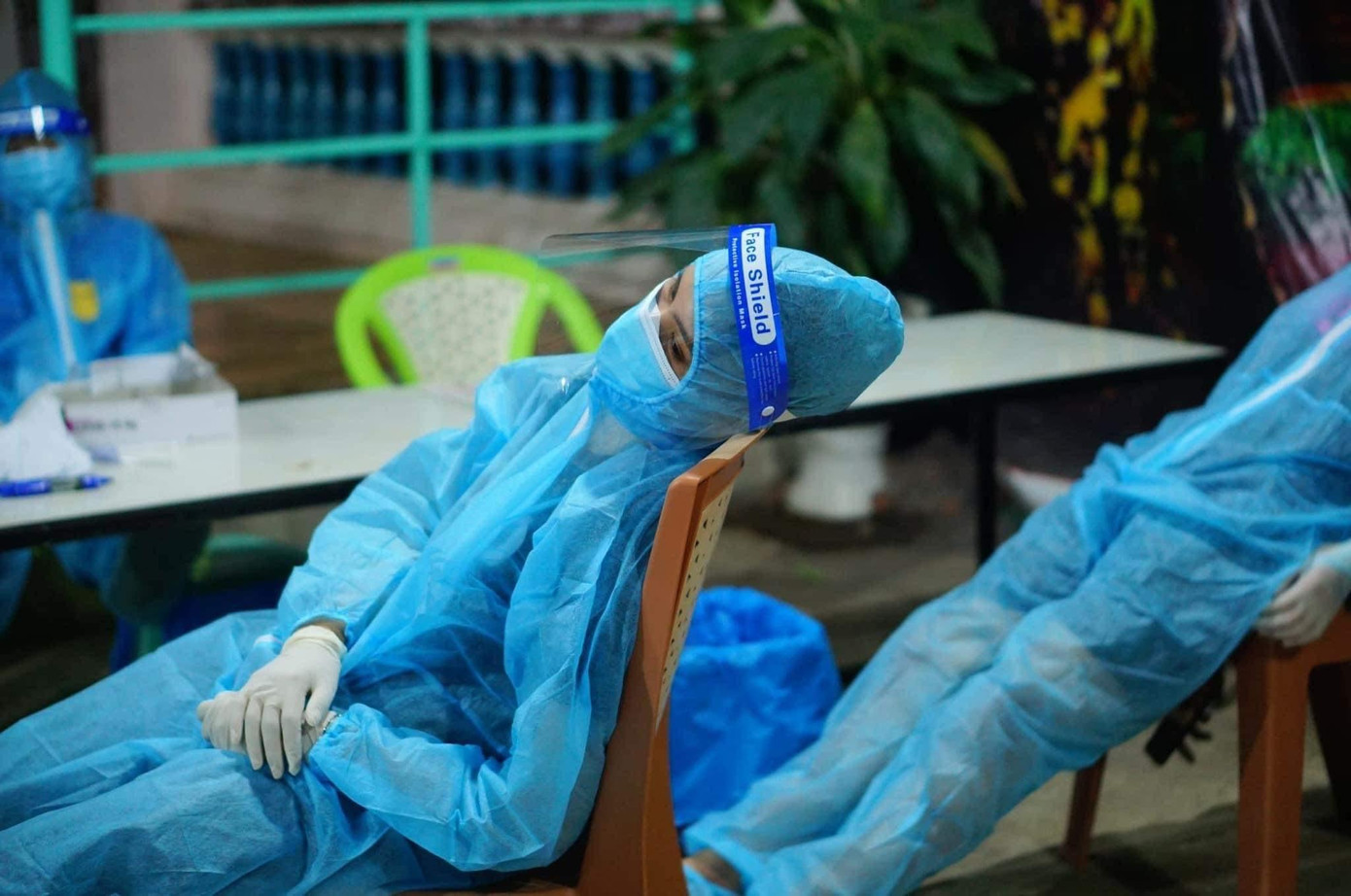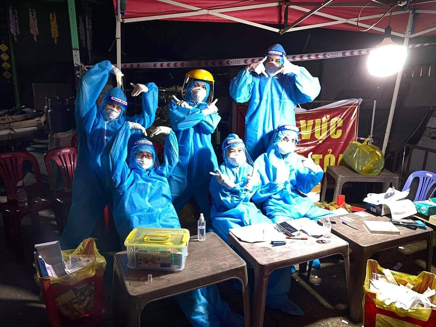 | Ngân trong đội lấy mẫu bóc tách F0 ra khỏi cộng đồng. |