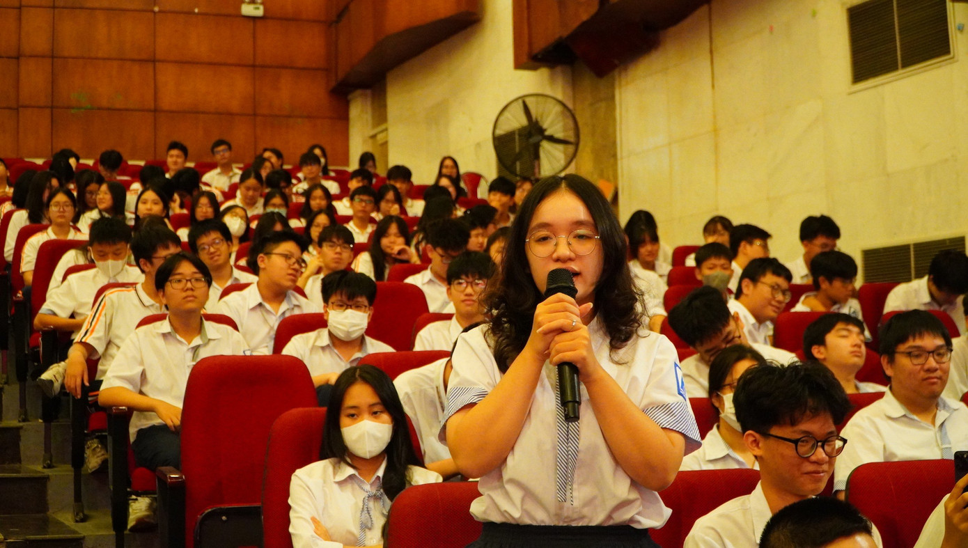| Học sinh Trường THPT chuyên Hà Nội – Amsterdam đặt câu hỏi giao lưu với các sinh viên thủ khoa xuất sắc tốt nghiệp các trường đại học, học viện trên địa bàn Thủ đô Hà Nội. |