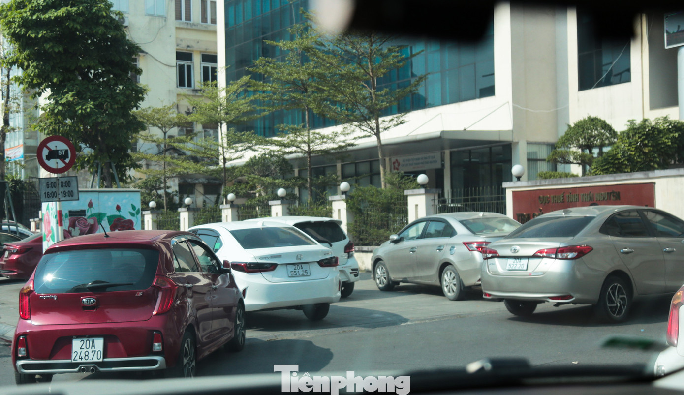 | Dọc tuyến đường Hoàng Văn Thụ, tình trạng đỗ ô tô trên vỉa hè còn được bắt gặp tại mặt tiền của nhiều cơ quan, đơn vị, công ty, ngân hàng. |