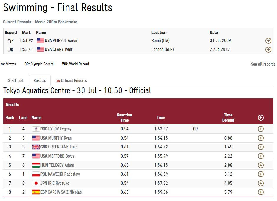 Chiến thắng này của Evgeny Rylov chấm dứt sự thống trị trong suốt 29 năm của đoàn Mỹ ở nội dung 200m bơi ngửa. Bơi lội Mỹ giành HCV 200m bơi ngửa ở 6 kỳ thế vận hội gần đây nhất. Đương kim vô địch Olympic Ryan Murphy về đích ngay sau Evgeny Rylov, nhận huy chương bạc.
