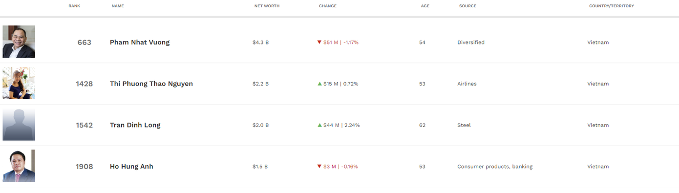 | Danh sách tỷ phú Việt theo xếp hạng của Forbes. |