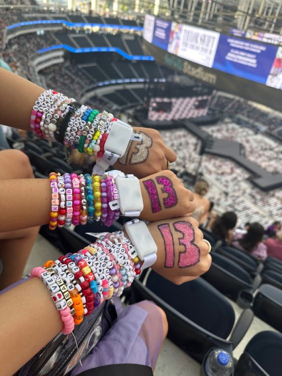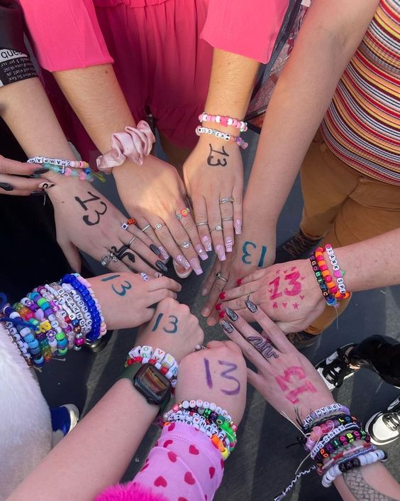 Bên cạnh vòng tay tình bạn, trên tay các Swifties thường có kí hiệu số 13. Đây là con số có nhiều ý nghĩa trong sự nghiệp của nữ nghệ sĩ người Úc, từ ngày sinh 13/12/1989 cho tới các cột mốc quan trọng trong hành trình sự nghiệp.