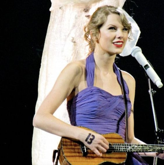 Trong thời kì Fearless, Taylor Swift thường dùng bút kẻ mắt, kim tuyến vẽ con số này trên bàn tay gảy đàn ghi-ta. Cũng vì lý do này, nhiều Swifties thể hiện sự hâm mộ với các phiên bản số 13 tương tự trong các show diễn.