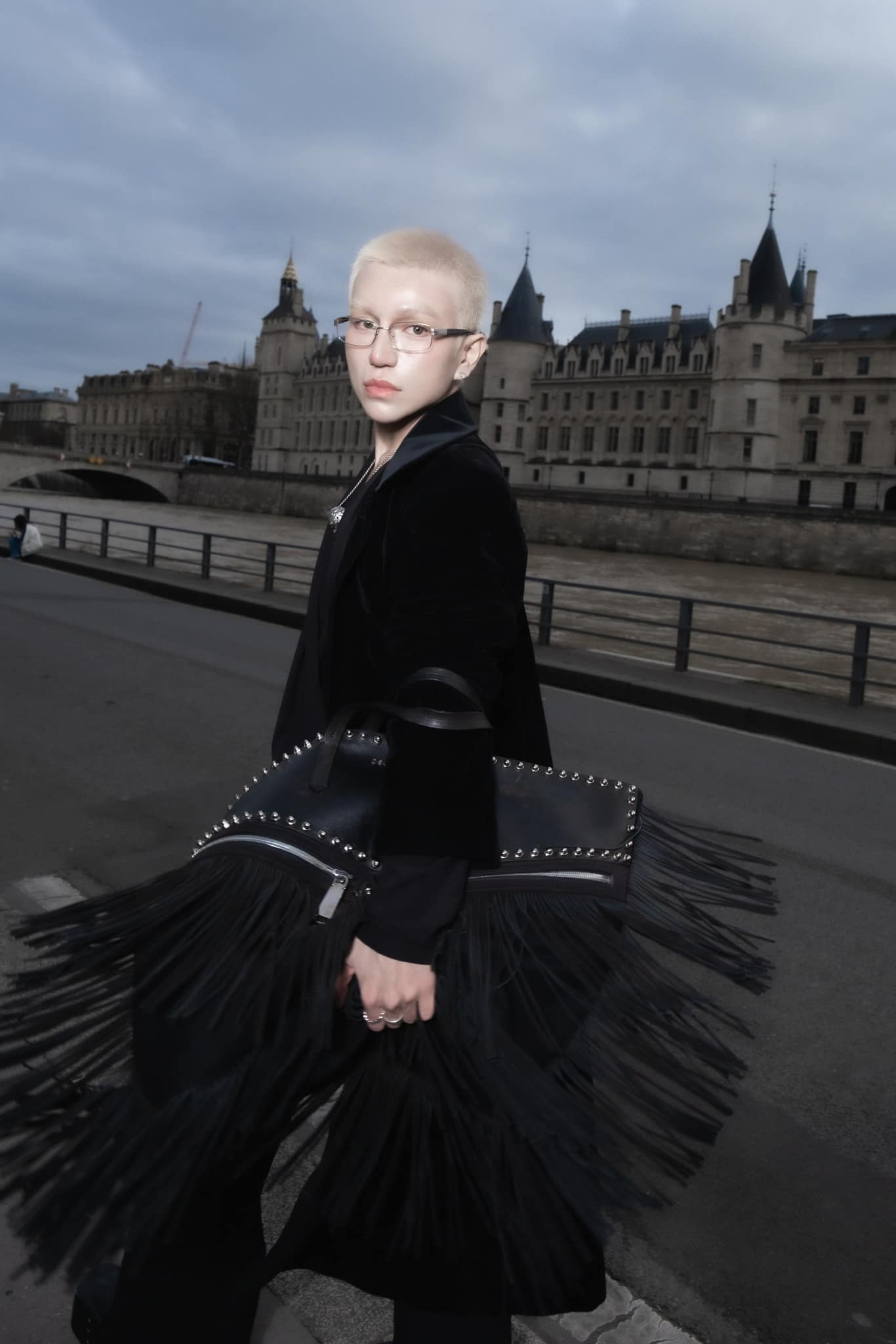 Sau màn debut ấn tượng, "chiến thần thời trang thế hệ mới" tiếp tục chinh chiến tại Paris Fashion Week 2024 với mái đầu bạc 3 phân cực chiến. Fashionisto sinh năm 1997 “mở bát” với show diễn của thương hiệu Benjamin Benmoyal, thời thượng trong tạo hình all black. Loạt phụ kiện kính mắt hình chữ nhật, dây chuyền, khuyên, nhẫn tông màu bạc và giày cao gót của thương hiệu Rick Owen “ghi điểm”.