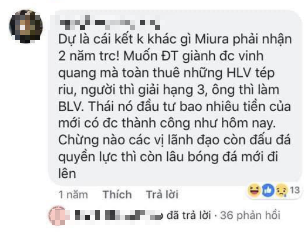 Mạng xã hội thời điểm đó cũng "dậy sóng" với không ít những lời chỉ trích, bình luận tiêu cực. Mũi rìu dư luận chĩa vào tân HLV người Hàn Quốc Park Hang Seo. "Dự là cái kết chẳng khác gì HLV Miura phải nhận 2 năm trước. Muốn ĐT giành vinh quang mà toàn thuê những HLV tép riu, người thì giải hạng 3, ông thì làm BLV. Thái Lan đầu tư bao nhiêu tiền của mới có được thành công như ngày hôm nay đấy" - Facebook Nguyễn Quang Huy viết.