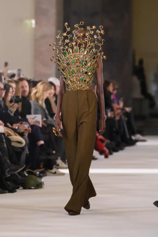 Theo nhà mốt Schiaparelli chiếc đầu sư tử, báo hoa mai và sói này không chỉ điểm nhấn của show diễn mà còn thể hiện tinh thần của bộ sưu tập Haute Couture mùa này lấy ý tưởng từ Thần khúc, một trường ca của nhà thơ Ý thời Trung cổ Dante Alighieri. Giám đốc sáng tạo Roseberry đã giải thích chiếc đầu sư tử “là một lời nhắc nhở rằng không có thiên đường mà không có địa ngục; không có niềm vui mà không có nỗi buồn; không có sự ngây ngất nào của sự sáng tạo mà không có sự tra tấn của sự nghi ngờ.”
