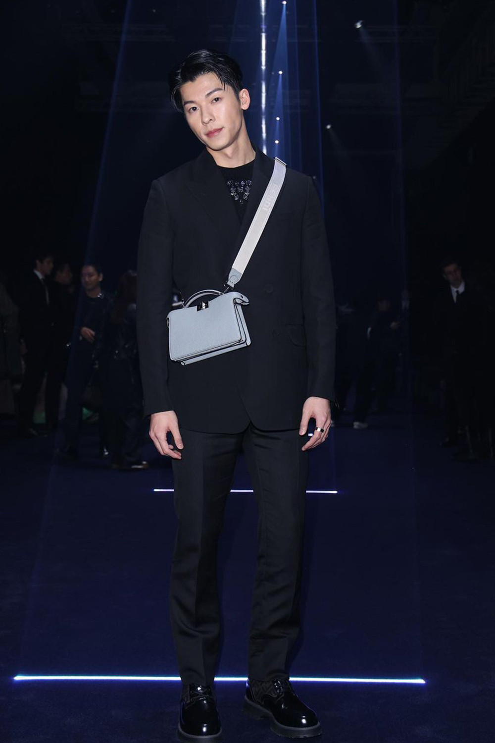 Nam chính Muốn Gặp Anh diện outfit thuần đen trong buổi diễn của Fendi tại Milan Fashion Week. Nhan sắc như tượng tạc cùng thân hình chuẩn người mẫu giúp Hứa Quang Hán "cân đẹp" mọi trang phục. Khoảnh khắc nam diễn viên chung khung hình với Song Hye Kyo cũng gây sốt mạng xã hội.