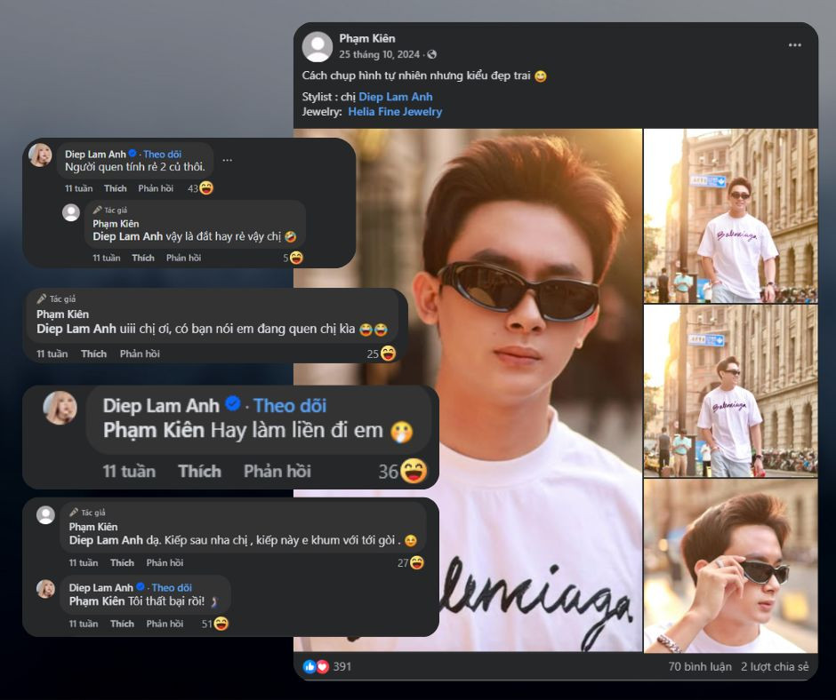 Cả Phạm Kiên và Diệp Lâm Anh đều tích cực tương tác, trả lời bình luận trong các bài viết của đối phương. Động thái của cặp sao, đặc biệt là của nam người mẫu Phạm Kiên được cho là ngầm xác nhận tin đồn hẹn hò thời gian gần đây. Khán giả để lại nhiều bình luận chúc mừng Diệp Lâm Anh với hạnh phúc mới.