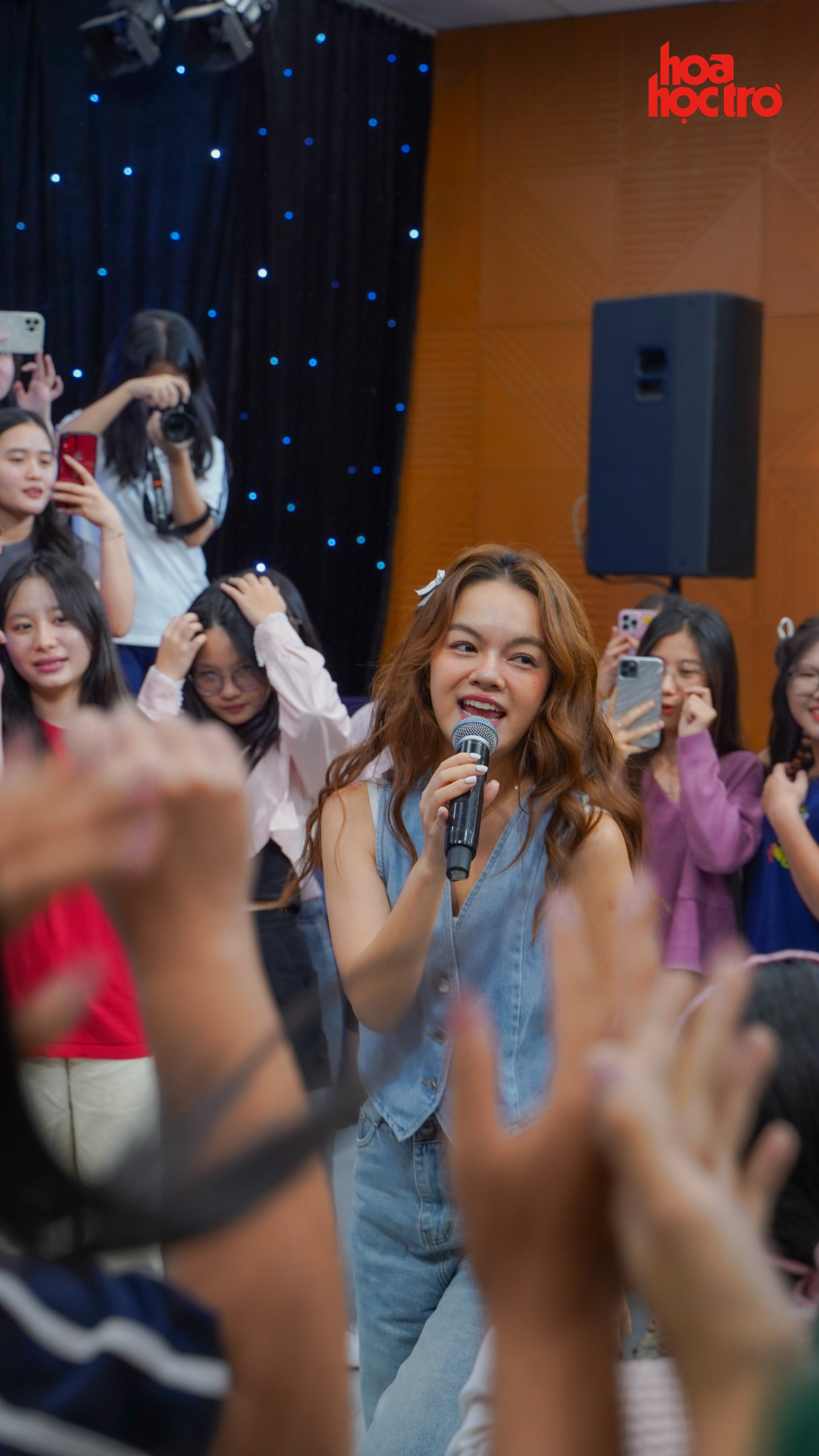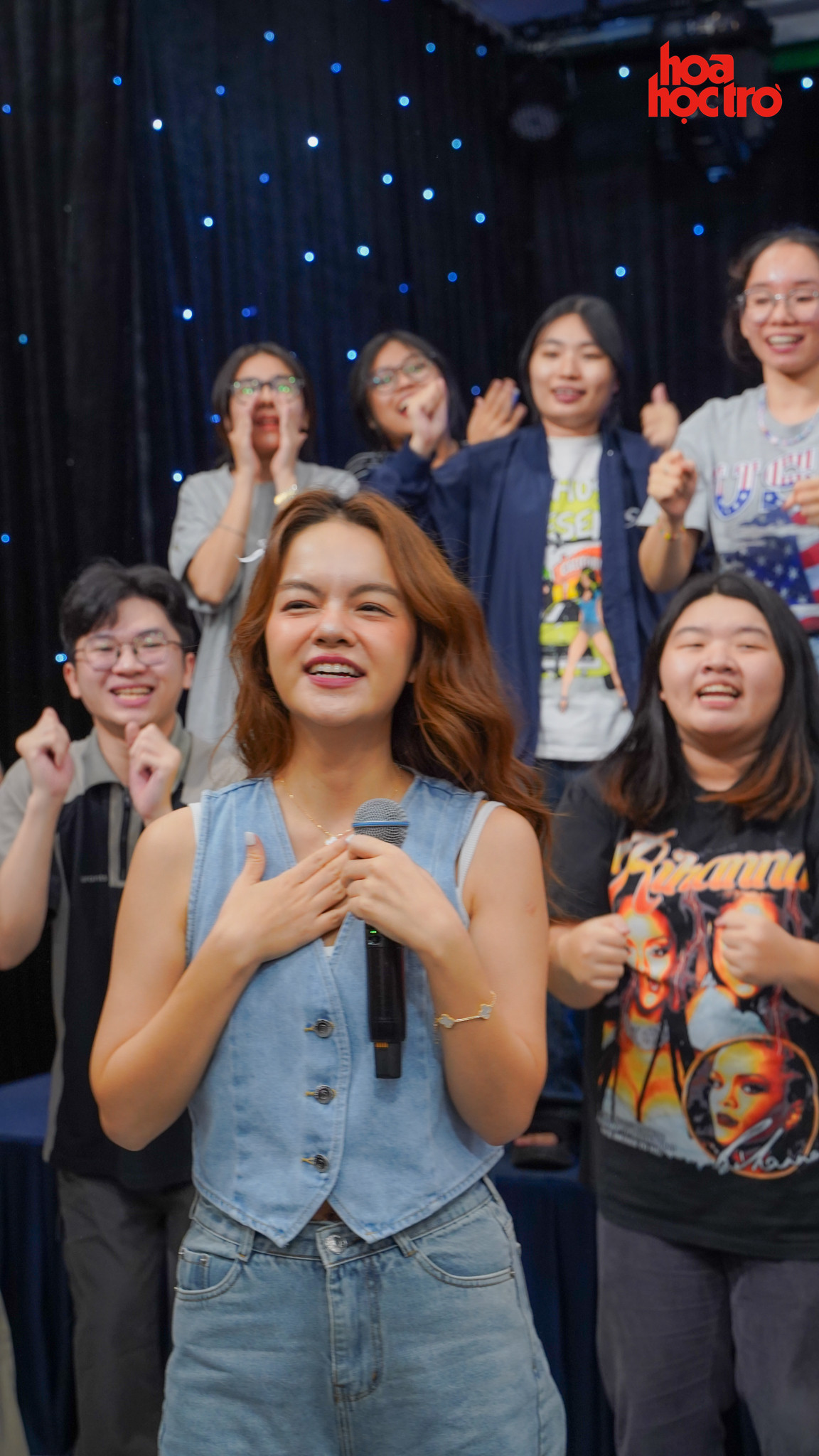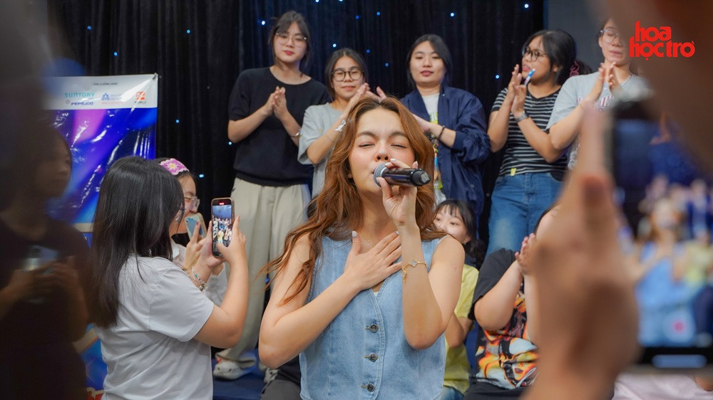 Các bạn thí sinh được phỏng vấn chị Phạm Quỳnh Anh vui là 9, còn nghe chị hát thì sướng đến 10 luôn. Khi có bạn yêu cầu: “Chị ơi, hát tặng tụi em vài câu đi”, ca sĩ Phạm Quỳnh Anh hóm hỉnh đáp: “Đã hát ai lại hát chơi vài câu, bật nhạc lên để hát nguyên một bài luôn nè”.